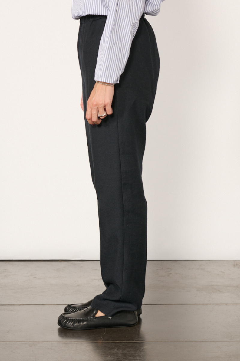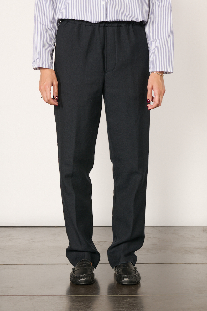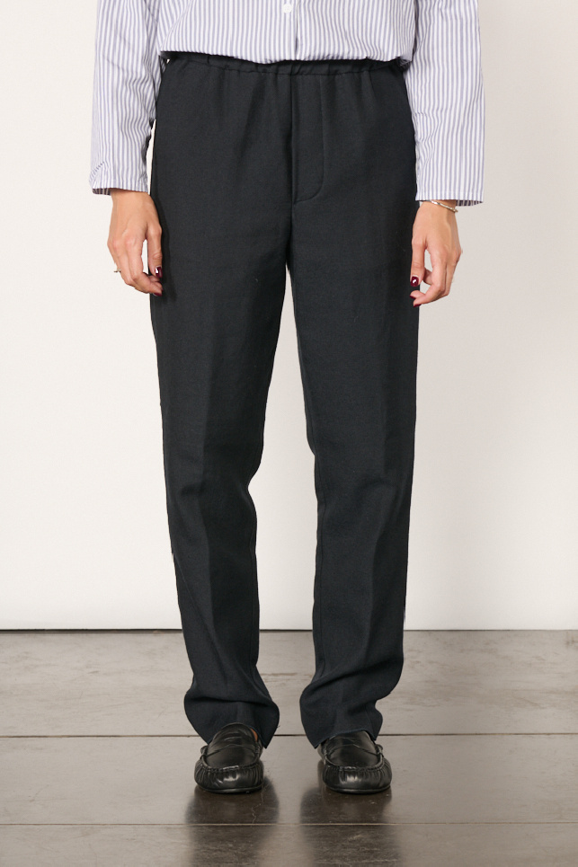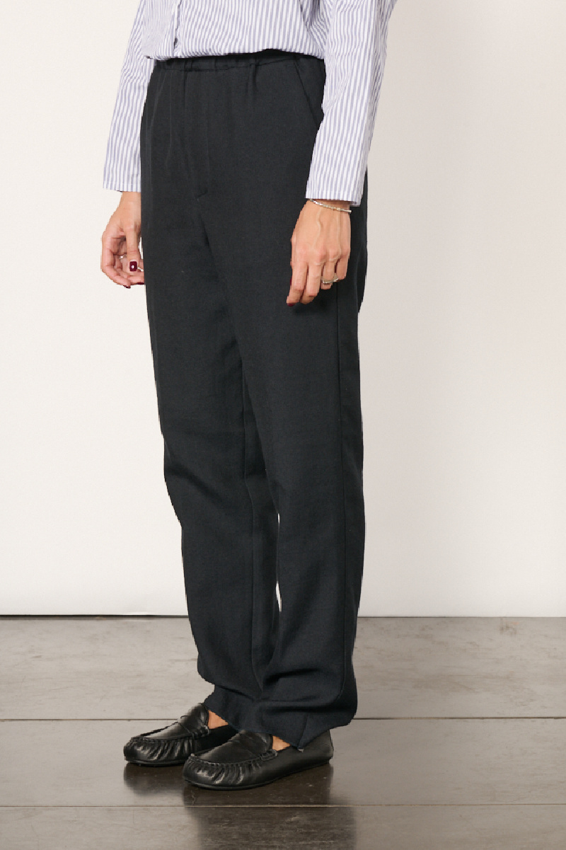 Easy pants crafted from a black wool and linen blend by Bergfabel.