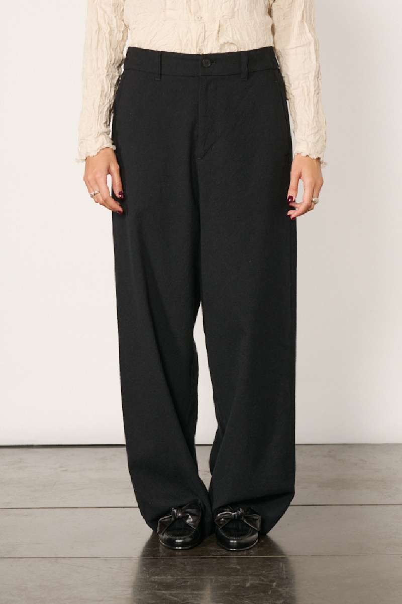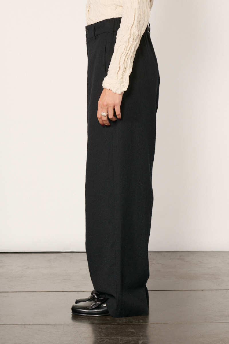 Trousers made from a finely textured blend of wool and black cotton, fully lined, from the brand Pas De Calais.