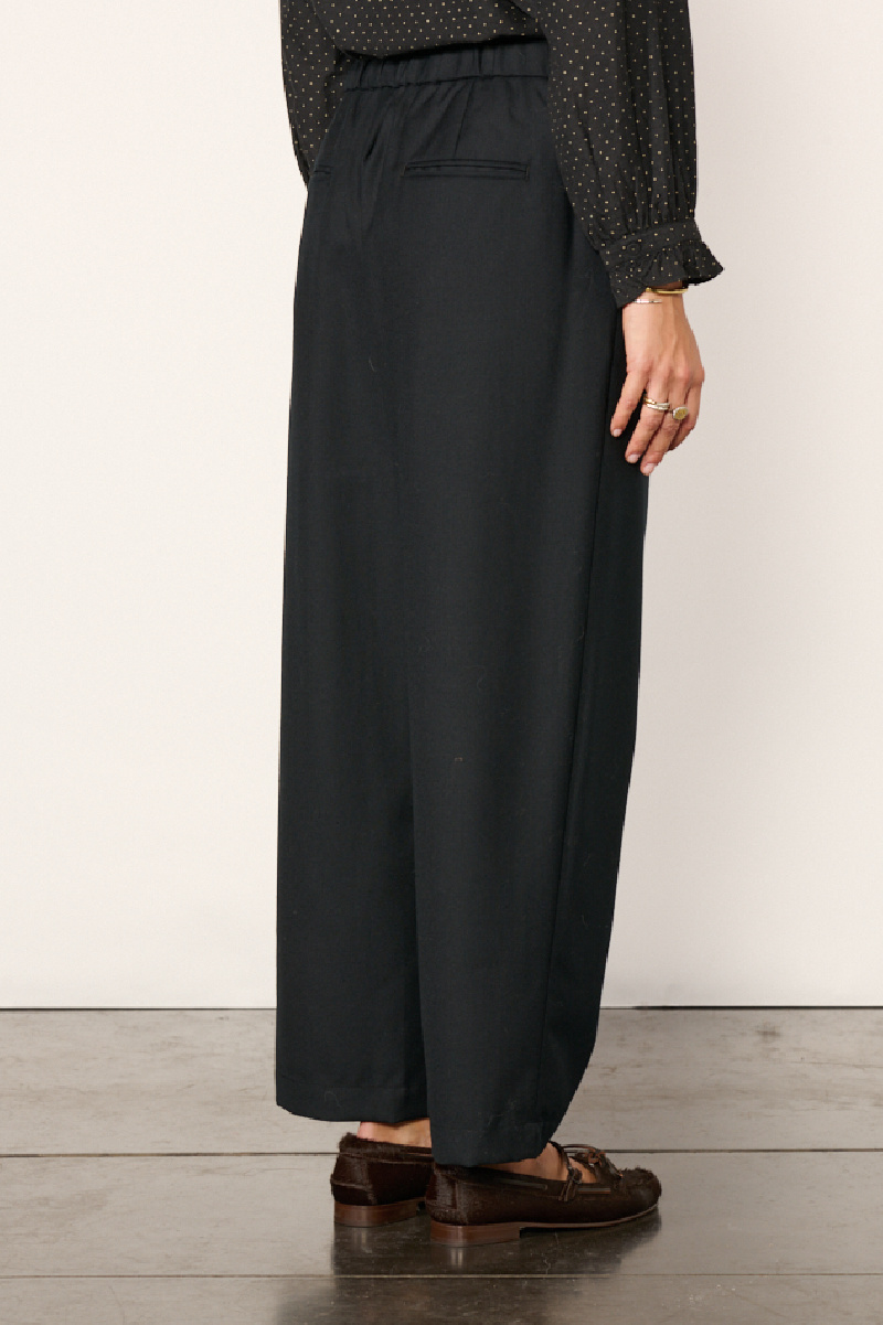 It offers a stylish fit with a mid-high waist, straight leg, an elasticated waistband with inner drawstring, two discreet side pockets, and welt pockets at the back.
