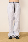 Featuring a relaxed wide-leg cut with a low-rise waist, a thin elastic waistband, and a black cotton belt. Discreet side-seam pockets and back patch pockets with buttons add practical details.