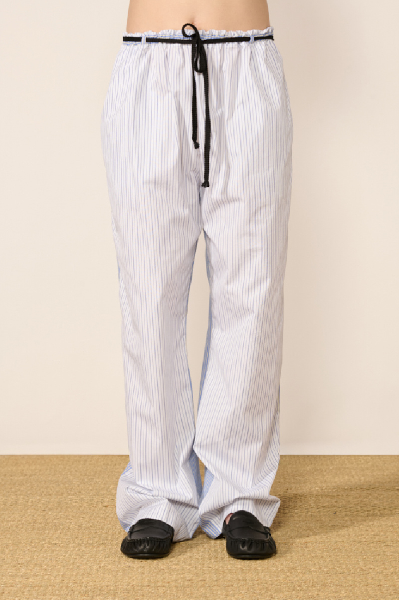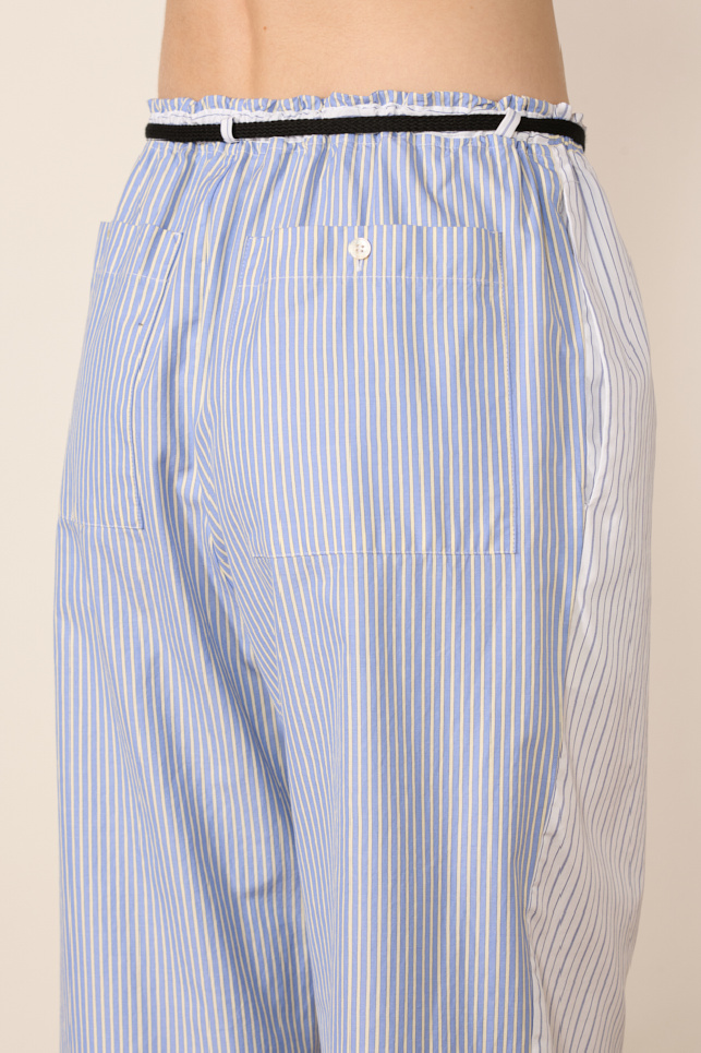 Crafted from two different fine-striped fabrics, these trousers offer a contemporary and fluid silhouette.