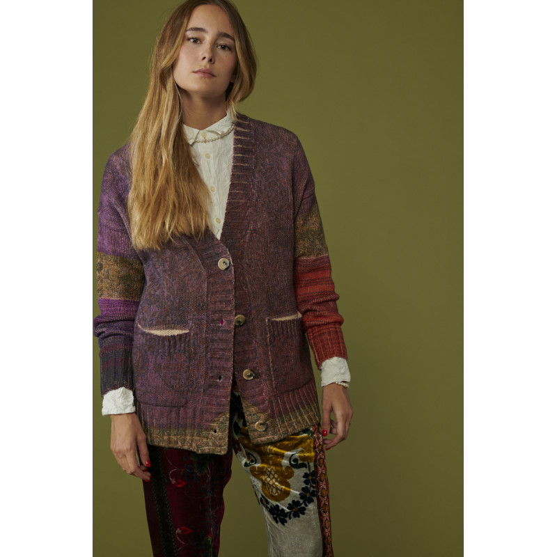 Pierre-Louis Mascia multicolored wool cardigan, pockets on both sides of cardigan, beige interior, matching interior color, button closure.