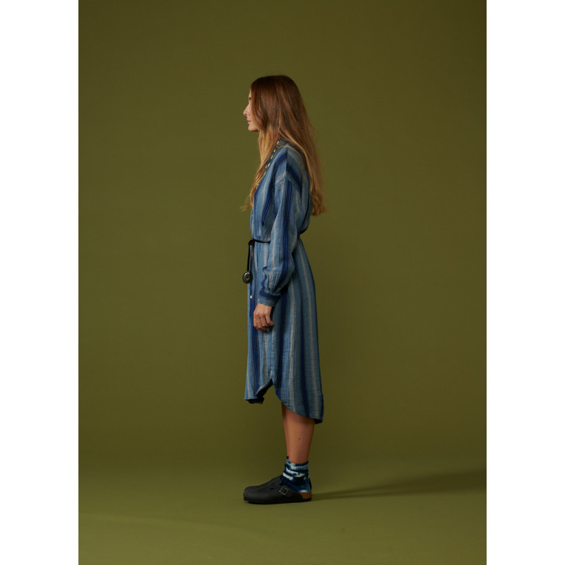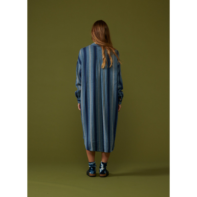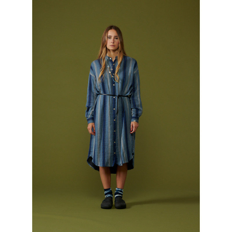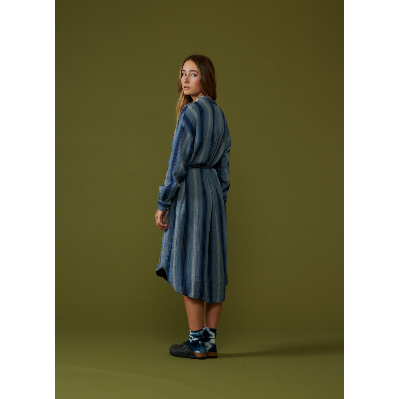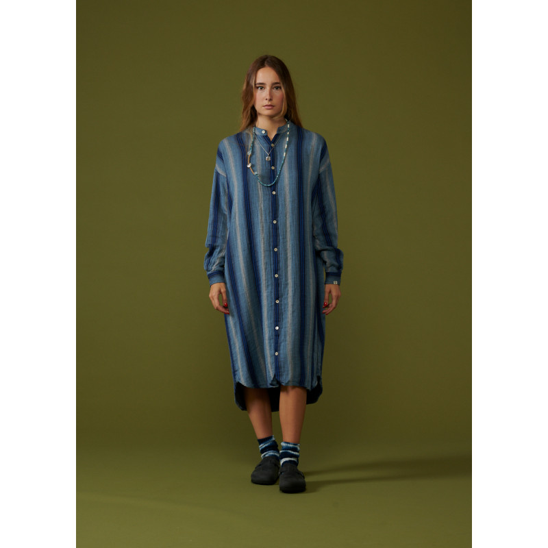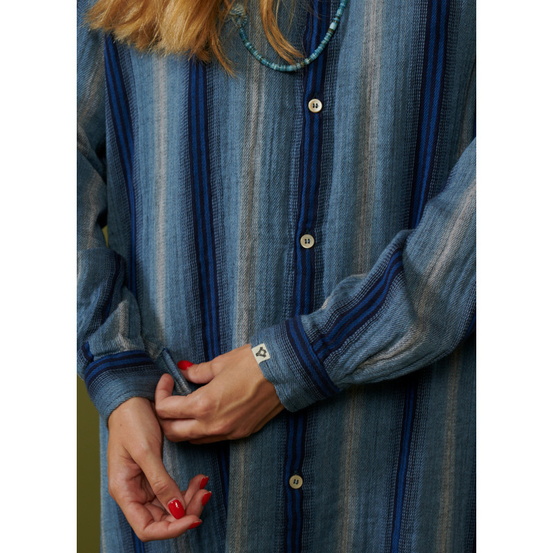 Bsbee shirt dress, heavy cotton, fine woven stripes, long cut, button closure.