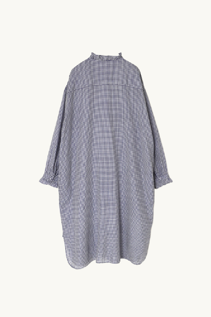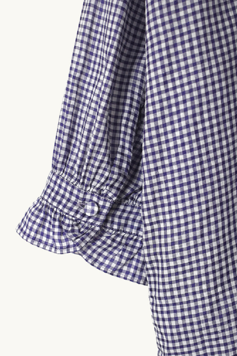 Long gingham Dress in white and violet cotton-silk by Maison de Soil.