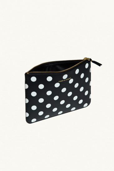 Grande pochette zippée - Noir à pois blancs