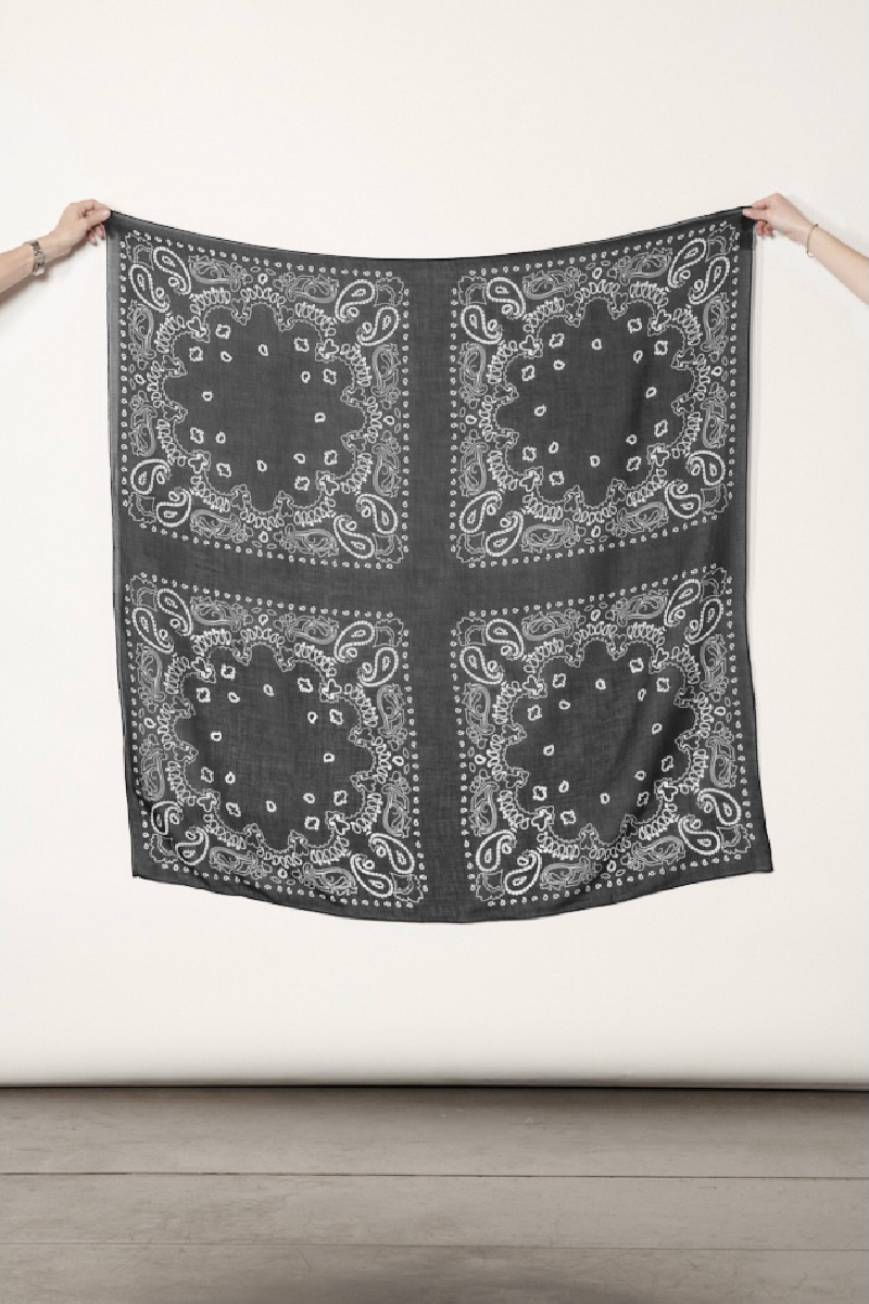 Foulard carrée en coton noir d'inspiration bandana, de la marque Destin.