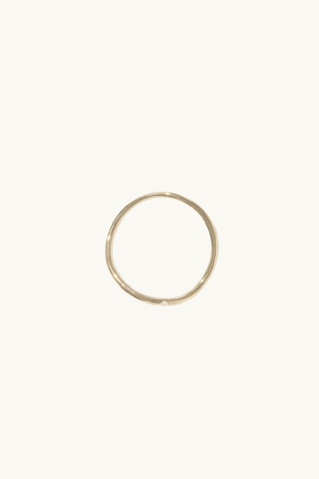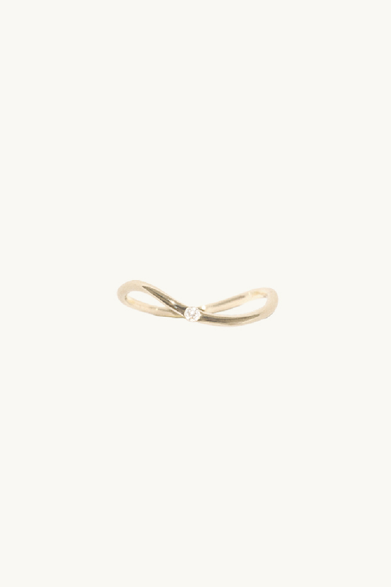 Sertie d’un diamant, son anneau fin, aux ondulations délicates, évoque les courbes fluides des dunes de sable.