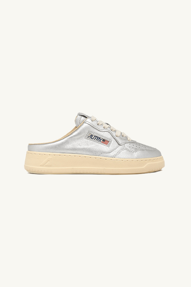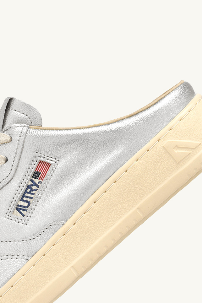 Baskets Medalist en mule de la marque Autry en nappa argent métallisé avec effet « used ».