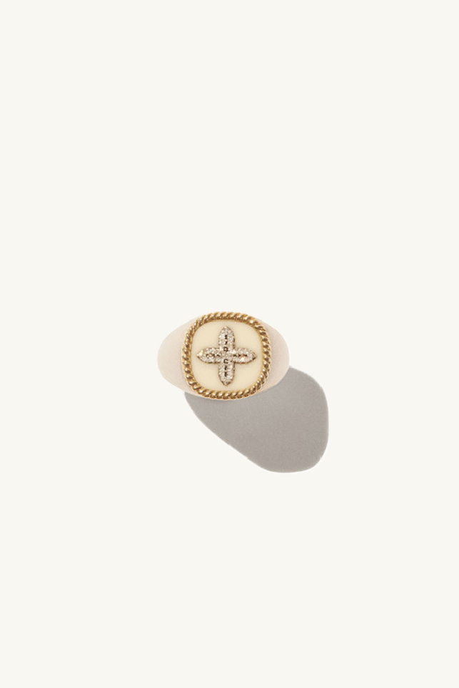 Bague chevalière Pascale Monvoisin, couleur argent, or et blanc, mixte.