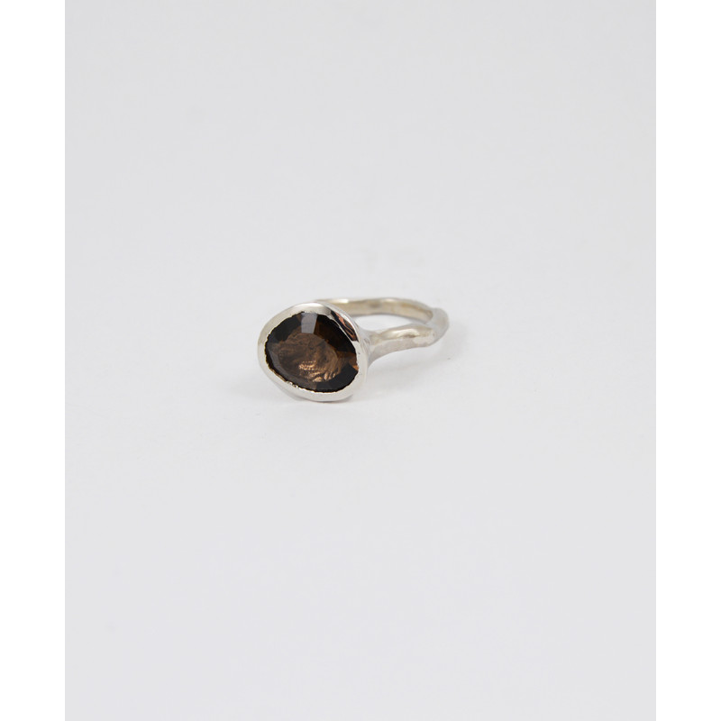 Bague Rosa Maria Blaze en argent sertie d'un crystal de quartz Fumé. Les bijoux de la marque Rosa Maria sont un mélange audacieux entre inspirations ethniques et esprit industriel brut.