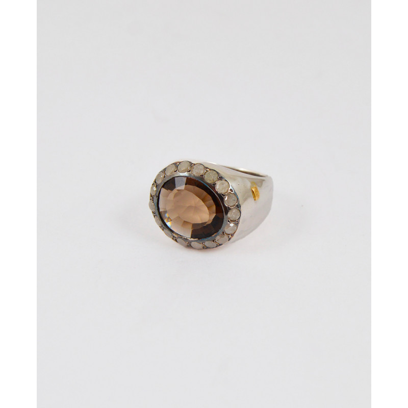 Bague Rosa Maria Heyonn en argent avec des diamants blancs glacés et quartz. Les bijoux de la marque Rosa Maria sont un mélange audacieux entre inspirations ethniques et esprit industriel brut.