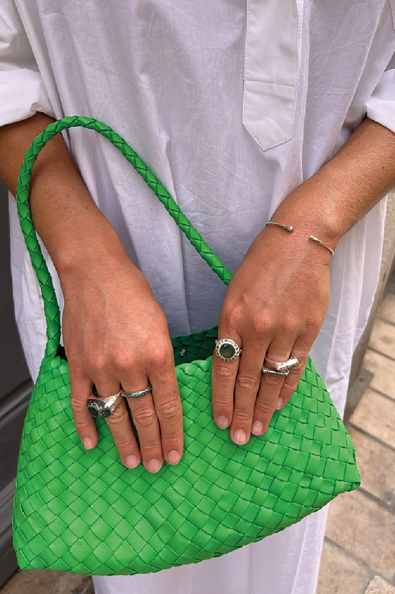 Bague de la marque Rosa Maria Julia en argent sertie de diamants gris et de serpentine de couleur verte. Les bijoux de la marque Rosa Maria sont un mélange audacieux entre inspirations ethniques et esprit industriel brut.