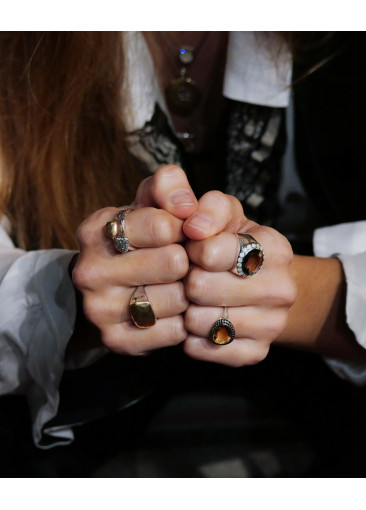 Bague de la marque Rosa Maria Julia en argent sertie de diamants et d'un crystal de quartz couleur cognac. Les bijoux de la marque Rosa Maria sont un mélange audacieux entre inspirations ethniques et esprit industriel brut.