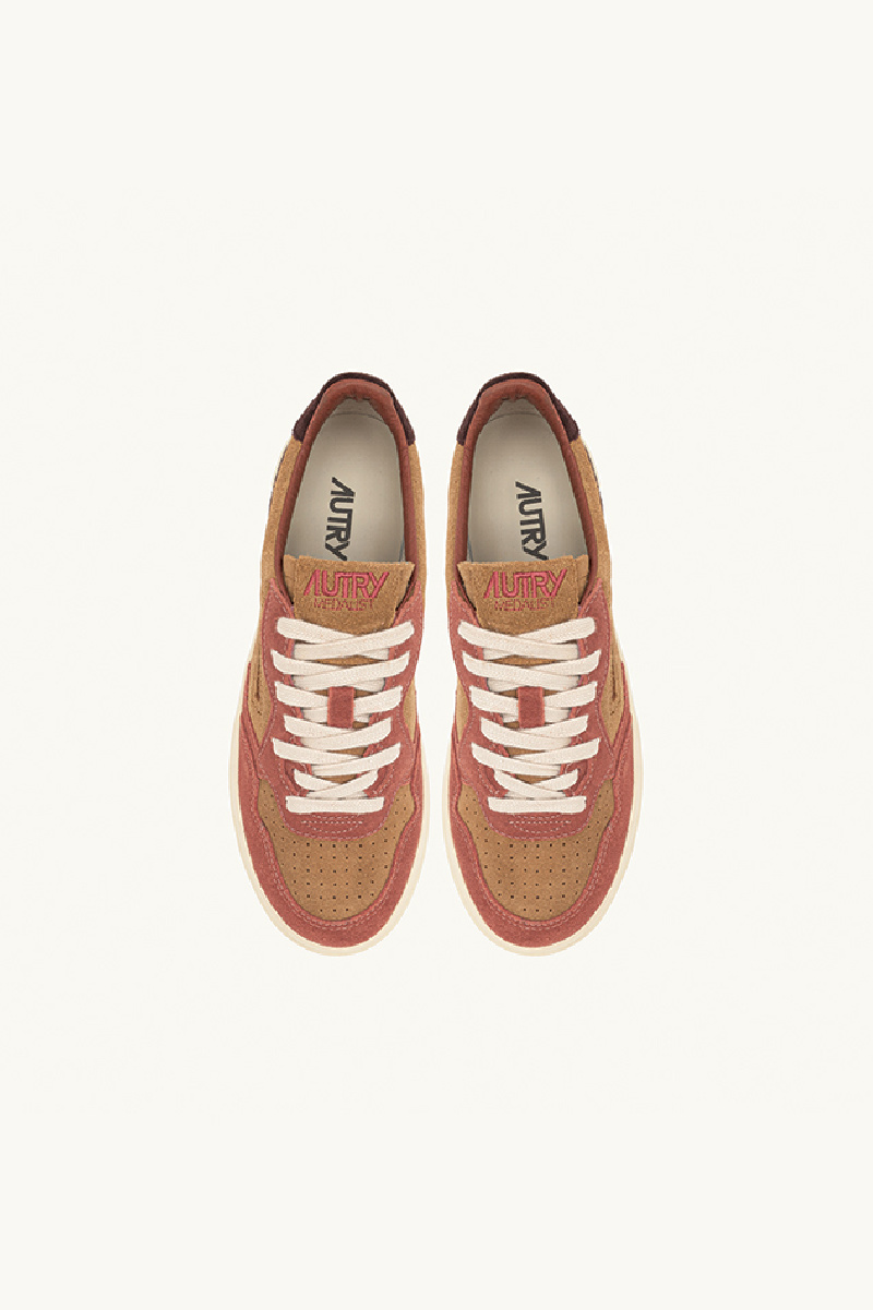 Design de la Medalist, elles offrent un avant-pied perforé, une semelle en caoutchouc, des lacets plats en coton, et une étiquette brodée cousue sur la languette.
