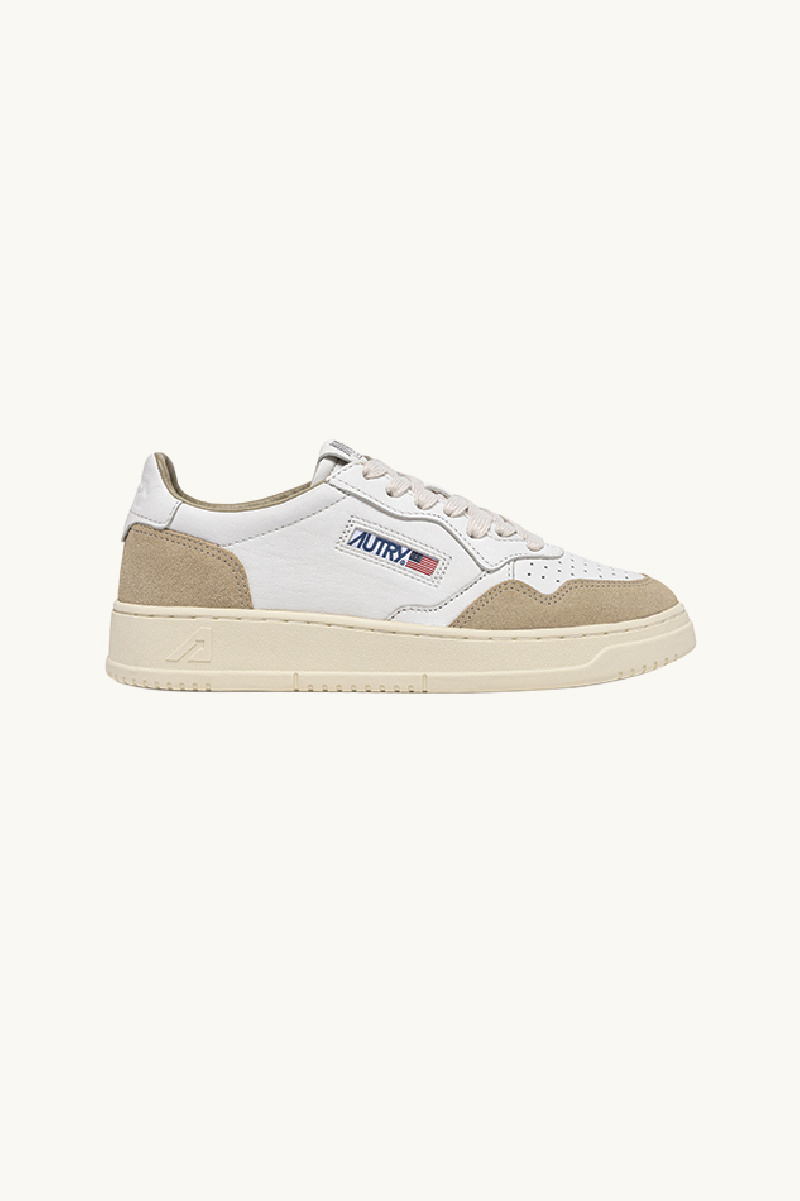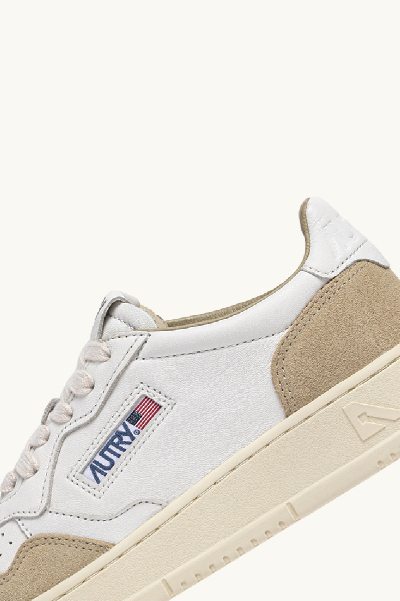Baskets AUTRY, en cuir et suède de couleur blanche, et beige.