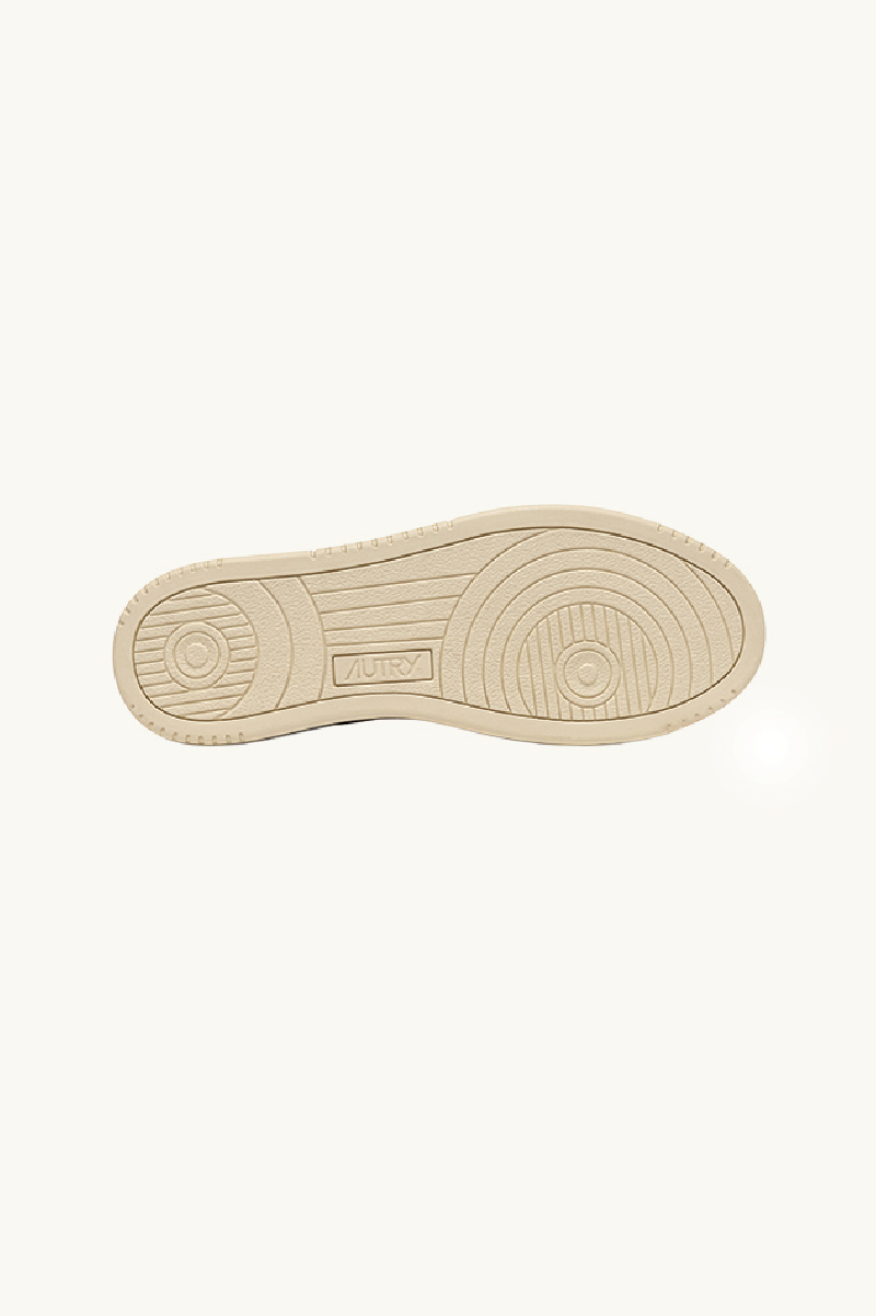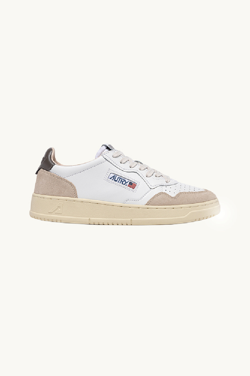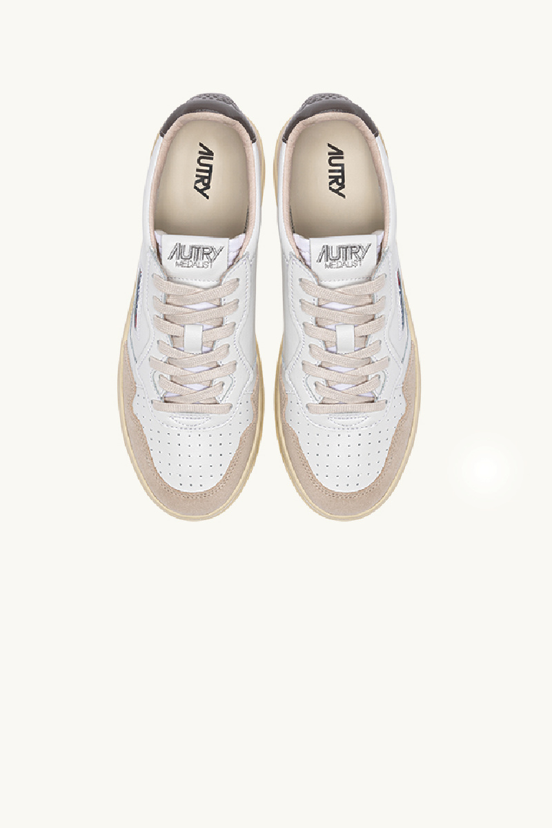 Baskets AUTRY, modèle Medalist low, en cuir blanc et daim beige.