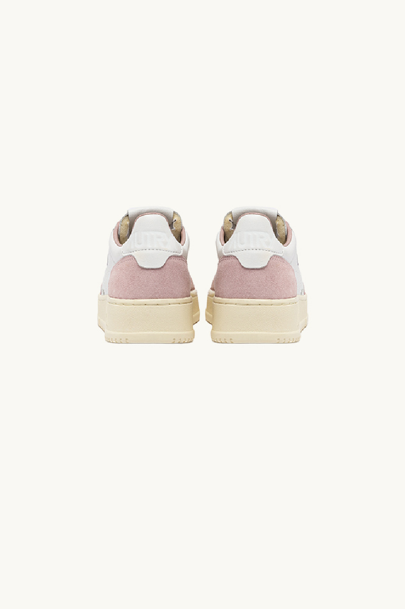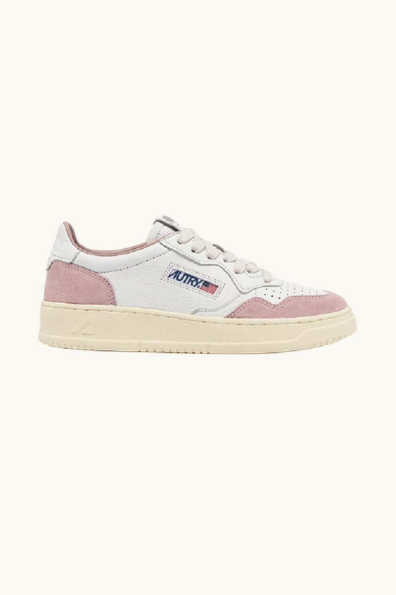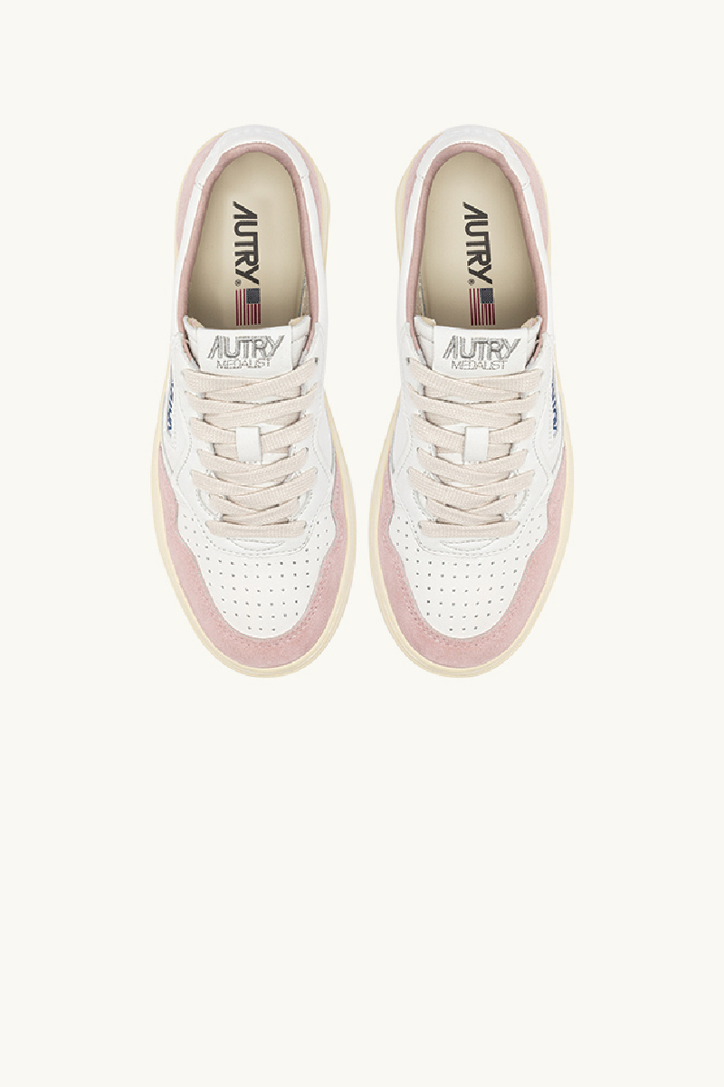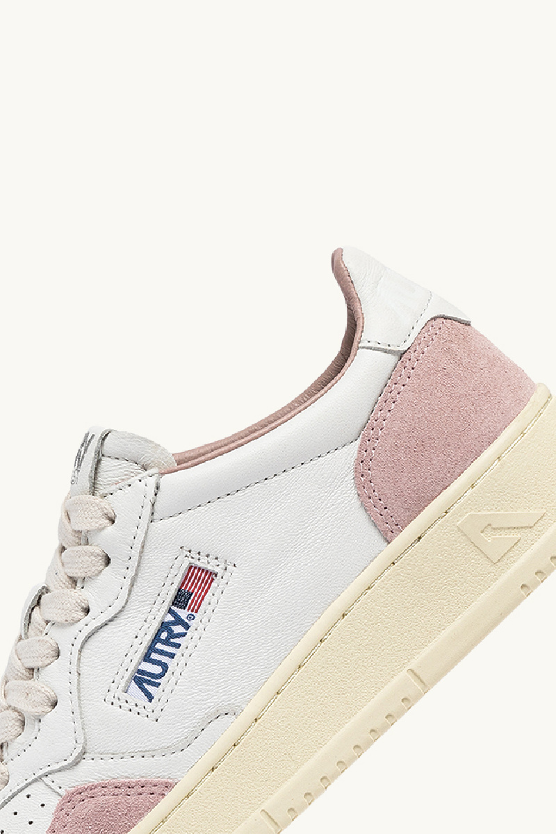 Baskets AUTRY, modèle Medalist low, en cuir blanc et daim rose.