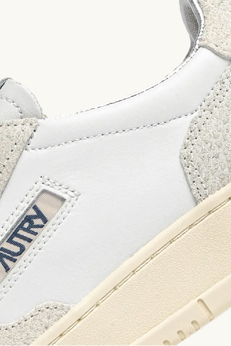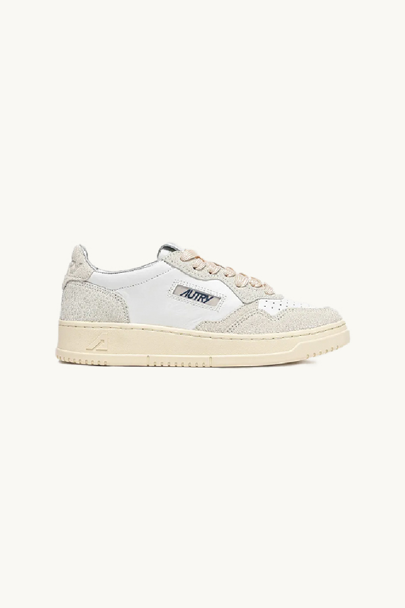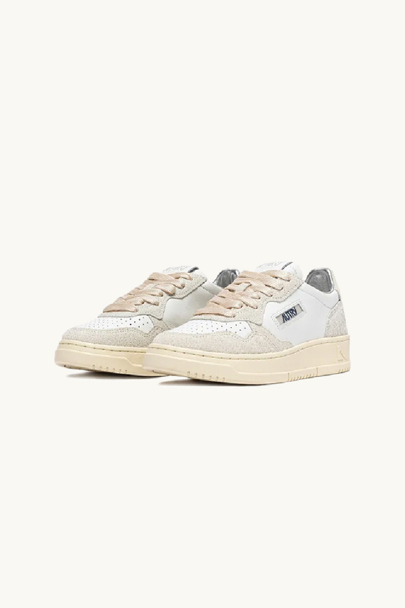 Baskets Medalist Low en cuir blanc et paillettes blanches de la marque Autry.