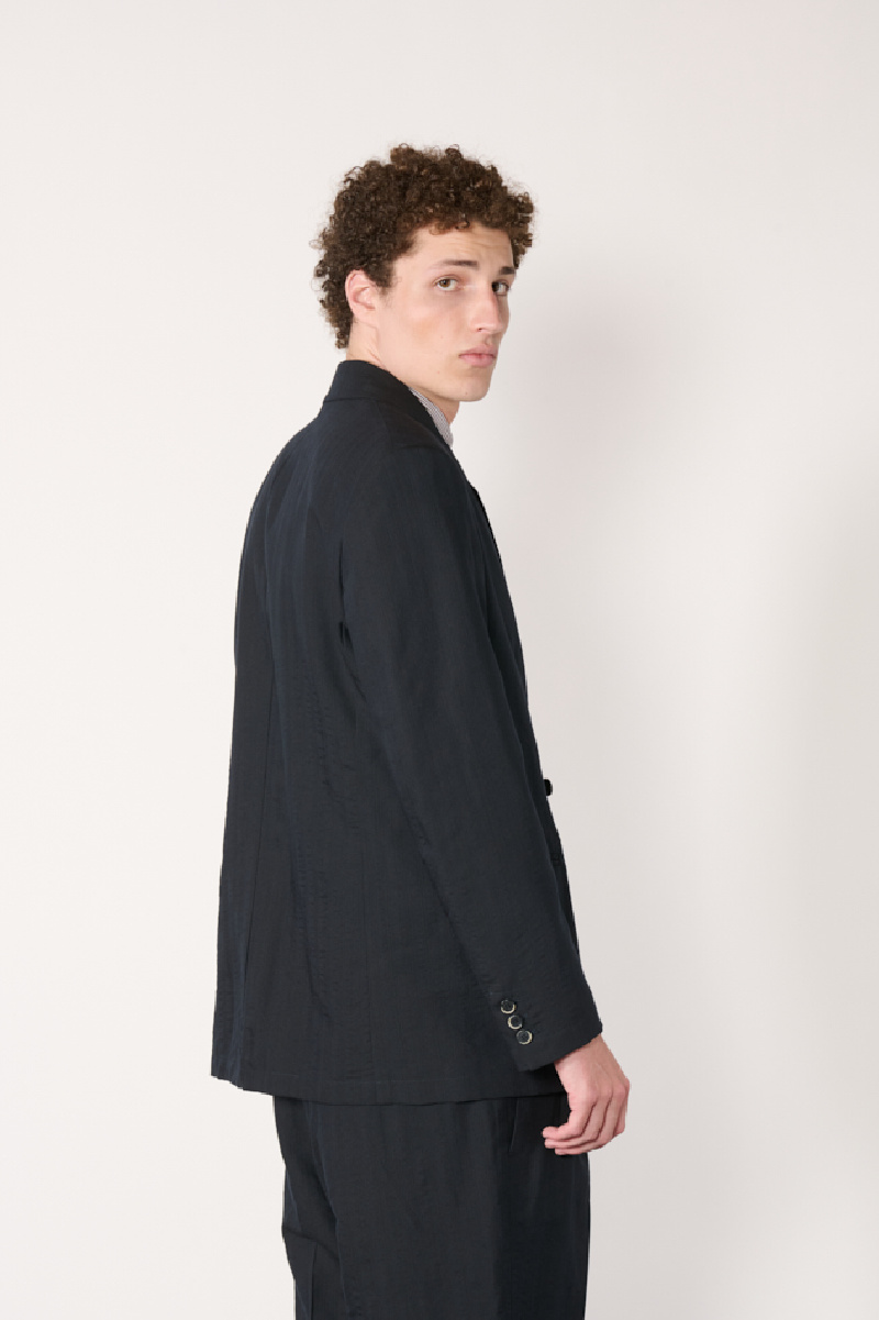 Il offre un coupe classique et élégante croisée, un revers cranté surpiqué avec boutonnière, de fines épaulette pour une tenue impeccable ainsi que de deux poches plaquées à rabat.