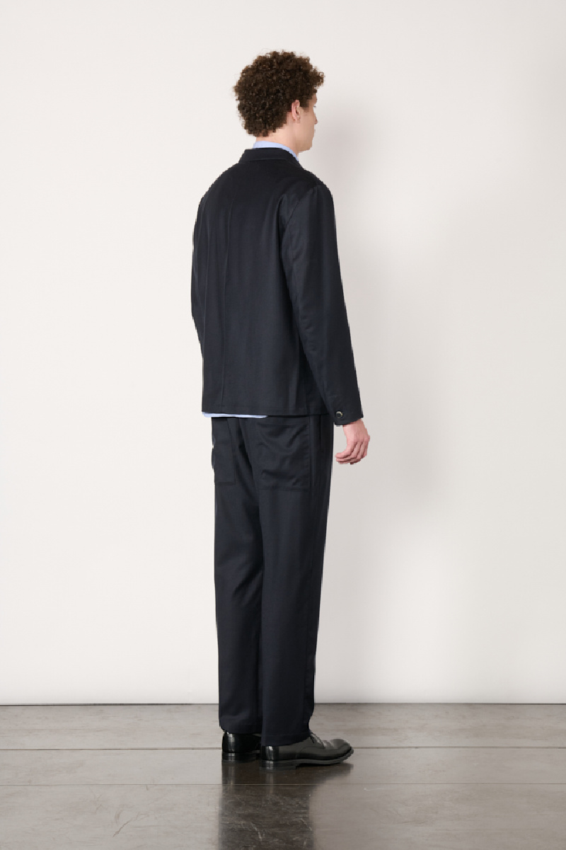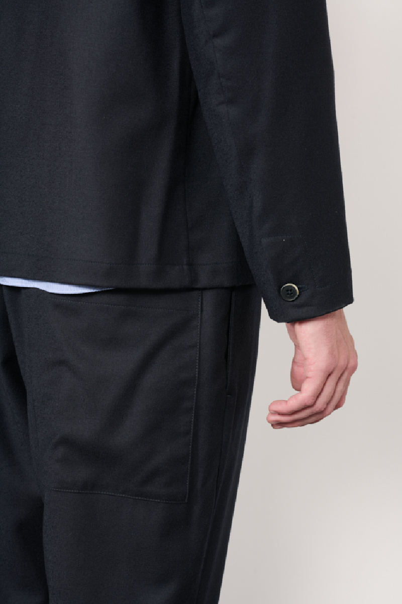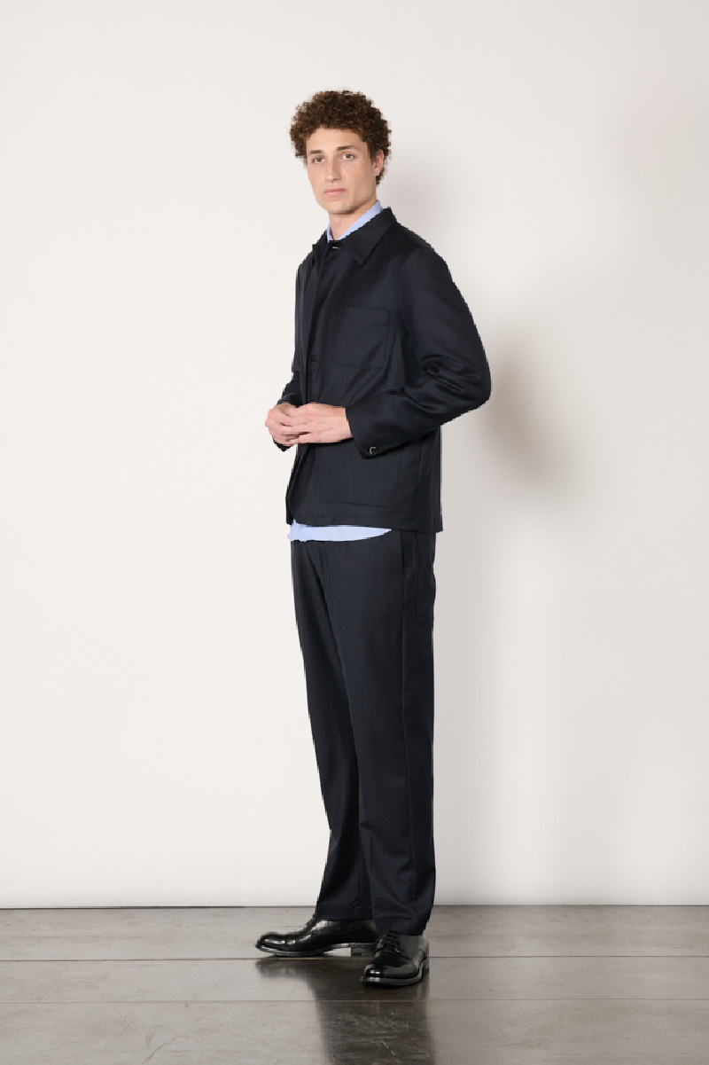 Veste légère de type sur-chemise confectionnée en laine vierge navy, doublée au niveau des manches, de la marque Barena.