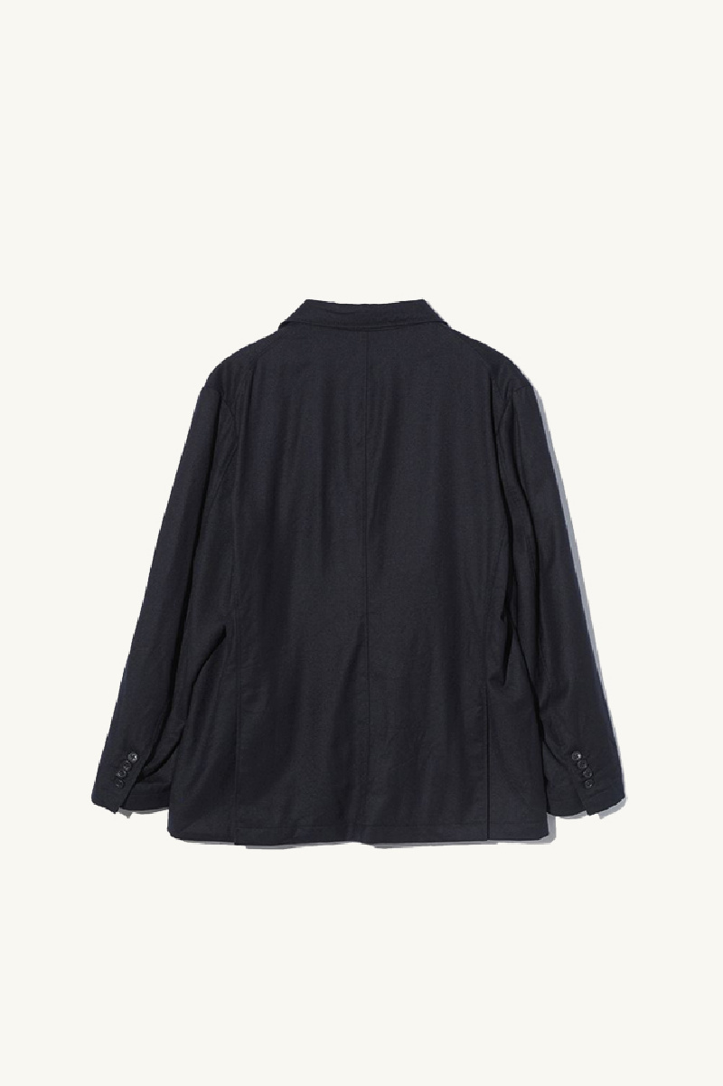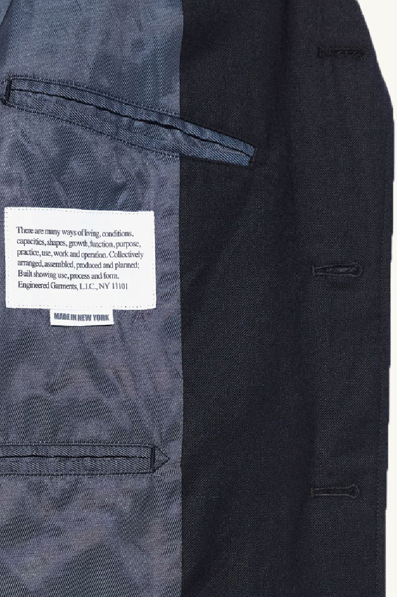 Blazer confectionné en laine Navy, entièrement doublée, de la marque Engineered Garments.