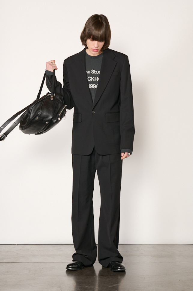 Blazer noir confectionné dans en viscose sartoriale dense au gramage épais, pour un tomber élégant, de la marque Acne Studios.