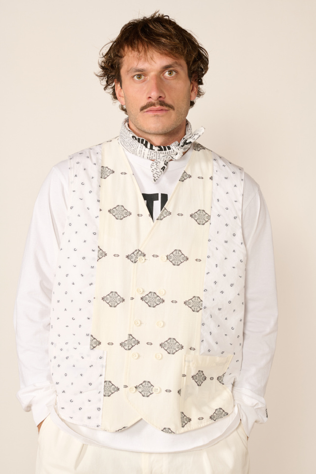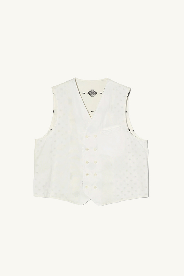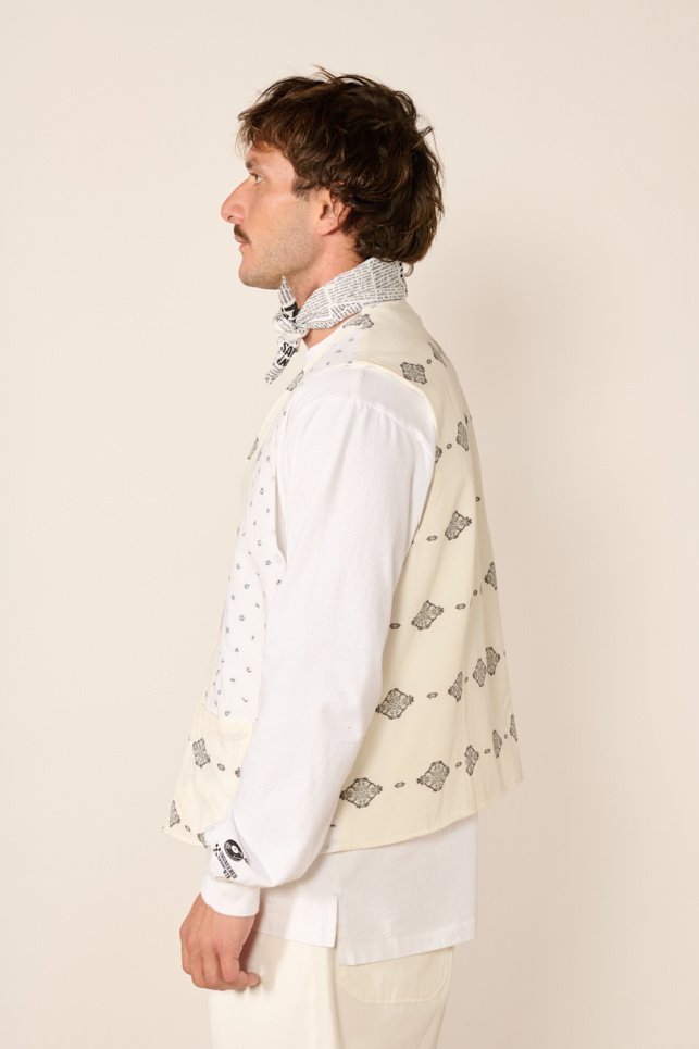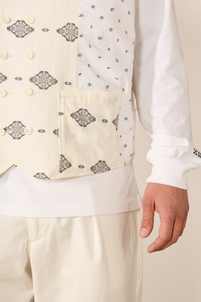 Gilet sans manche reversible confectionné en popeline de coton blanche épaisse, de la marque Engineered Garments.