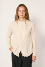 Blouse beige à fronces confectionnée en coton léger tissé à effet froissé, de la marque Pas de Calais.