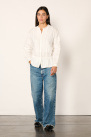 Chemisier confectionné dans un fin twill de coton khadi blanc, soigneusement tissé à la main, de la marque Maison de Soil.