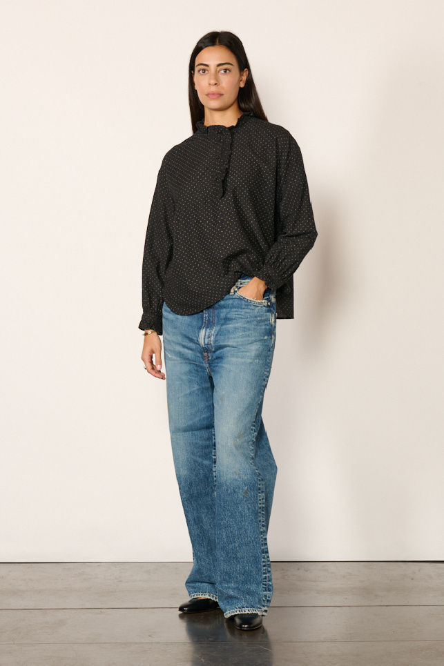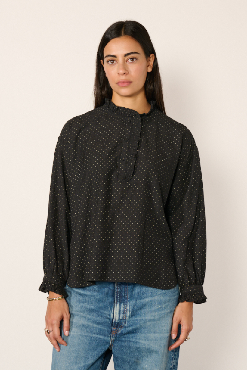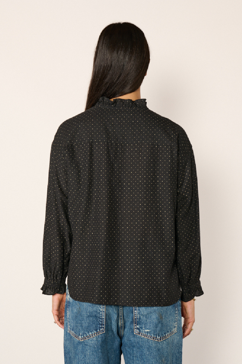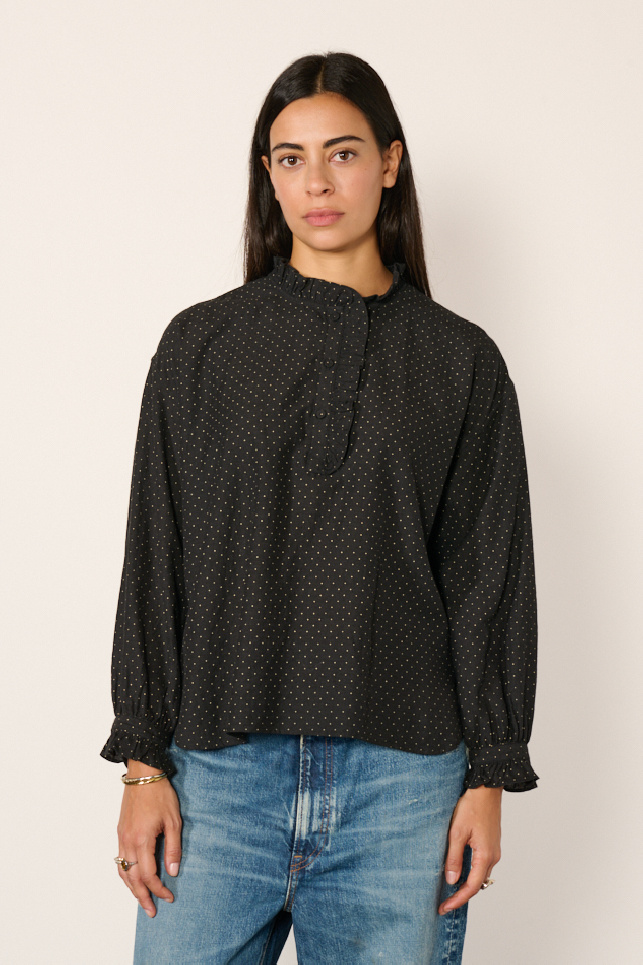 Chemisier à pois confectionné dans un mélange de laine, de coton et de soie, coloris noir, de Maison de Soil.