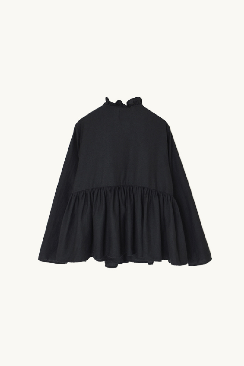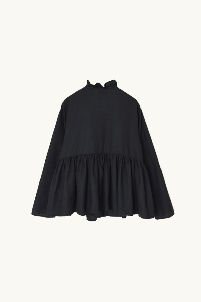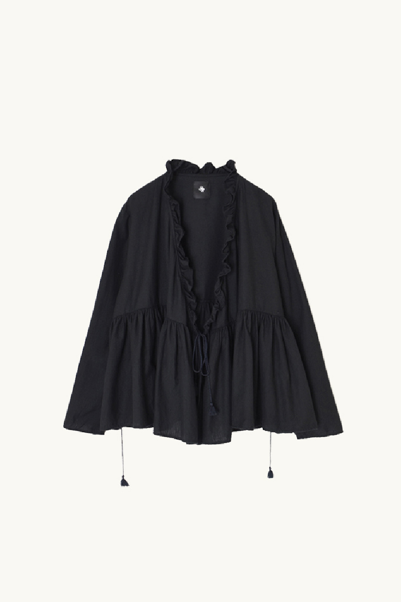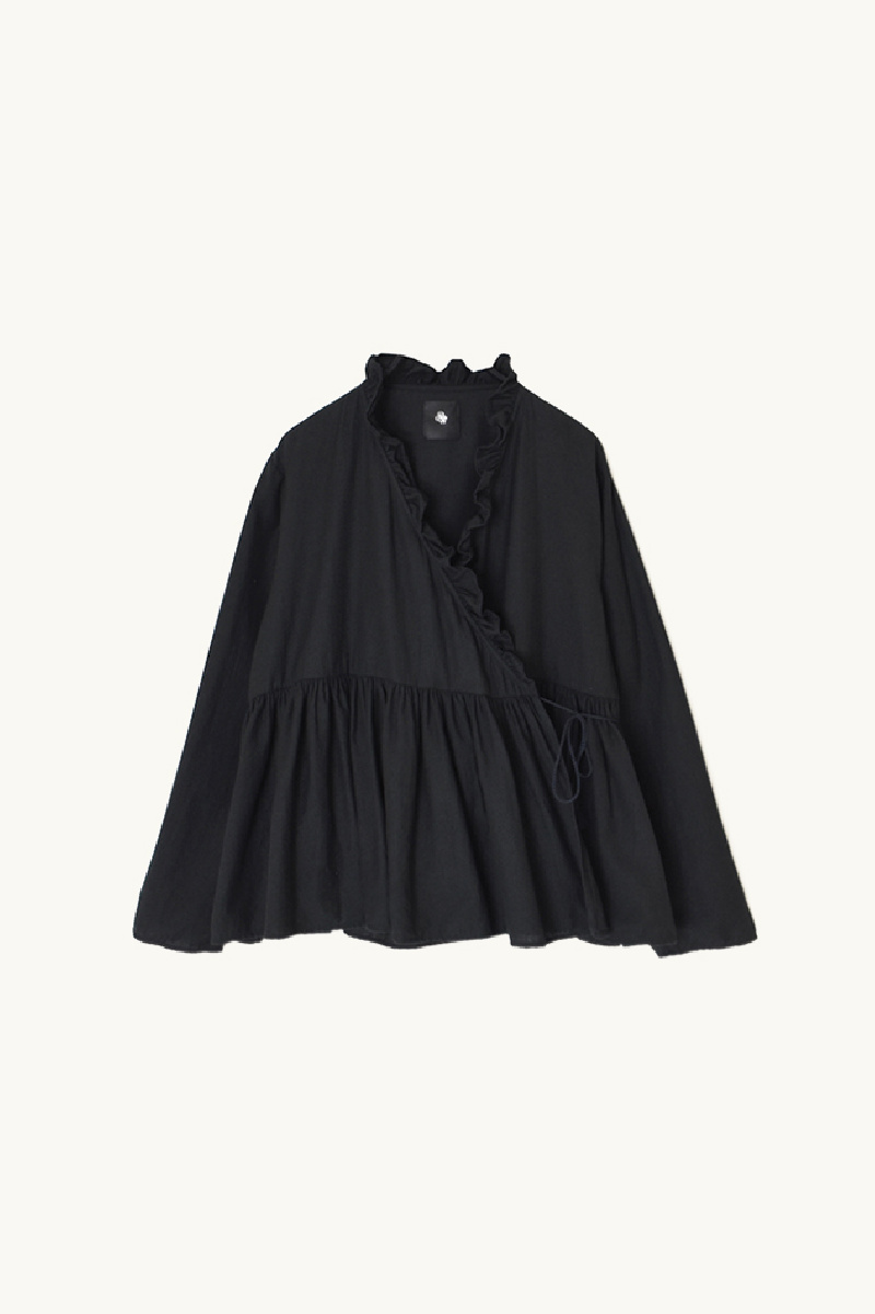 Blouse cache-coeur noire, confectionnée en coton, de la marque Maison de Soil.