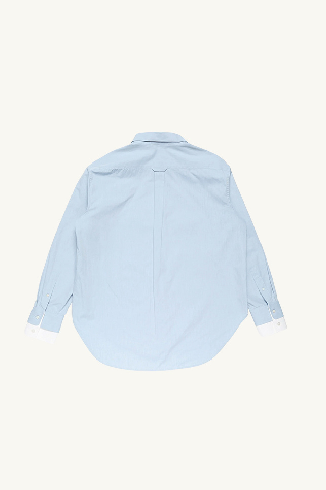 Elle offre un design superposé au niveau du col et des poignets, une coupe ample droite, un ourlet arrondi avec une étiquette discrete au niveau de la patte de boutonnage