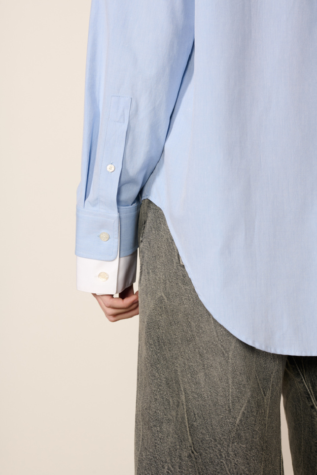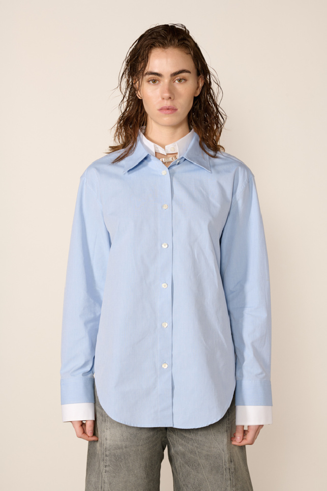 Chemise confectionnée en popeline de coton bleu, de la marque Acne Studios.