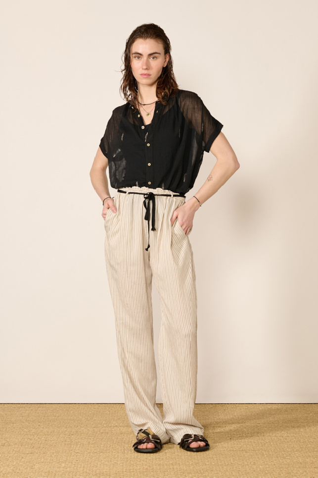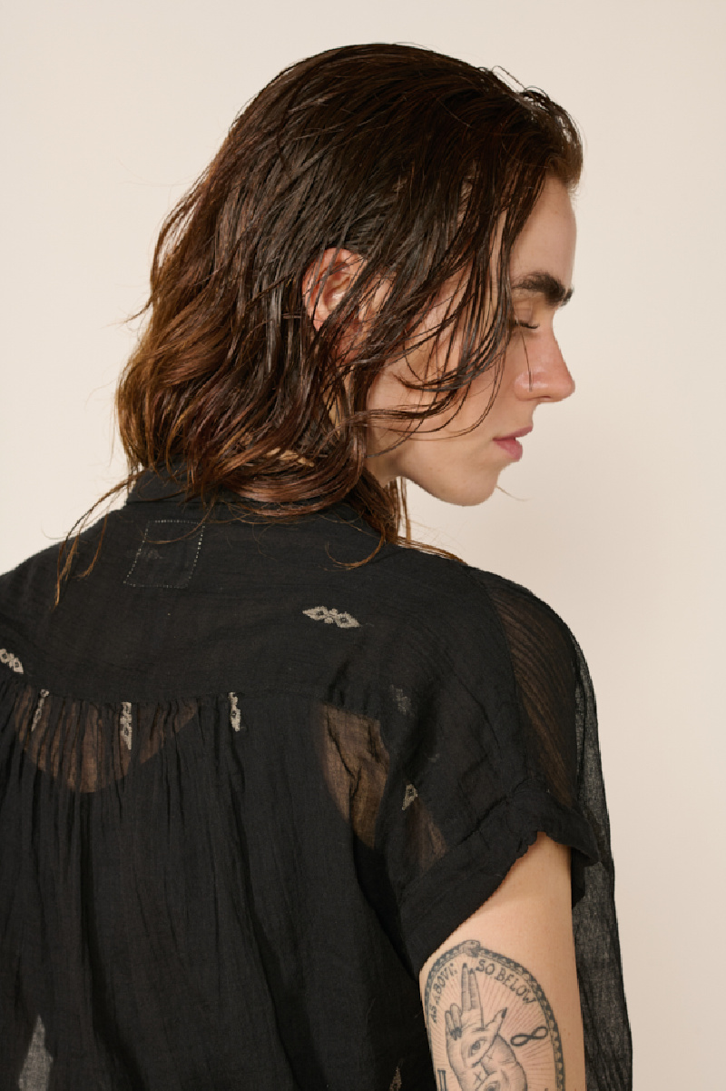 Chemise légère à manches courtes, confectionnée en coton noir transparent, de la marque Bsbee.