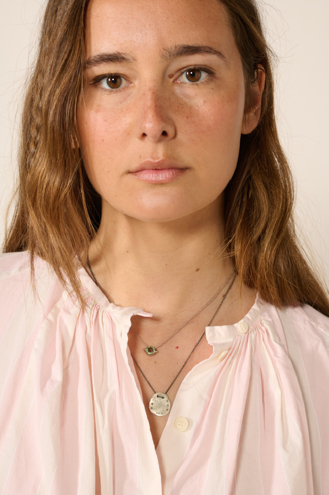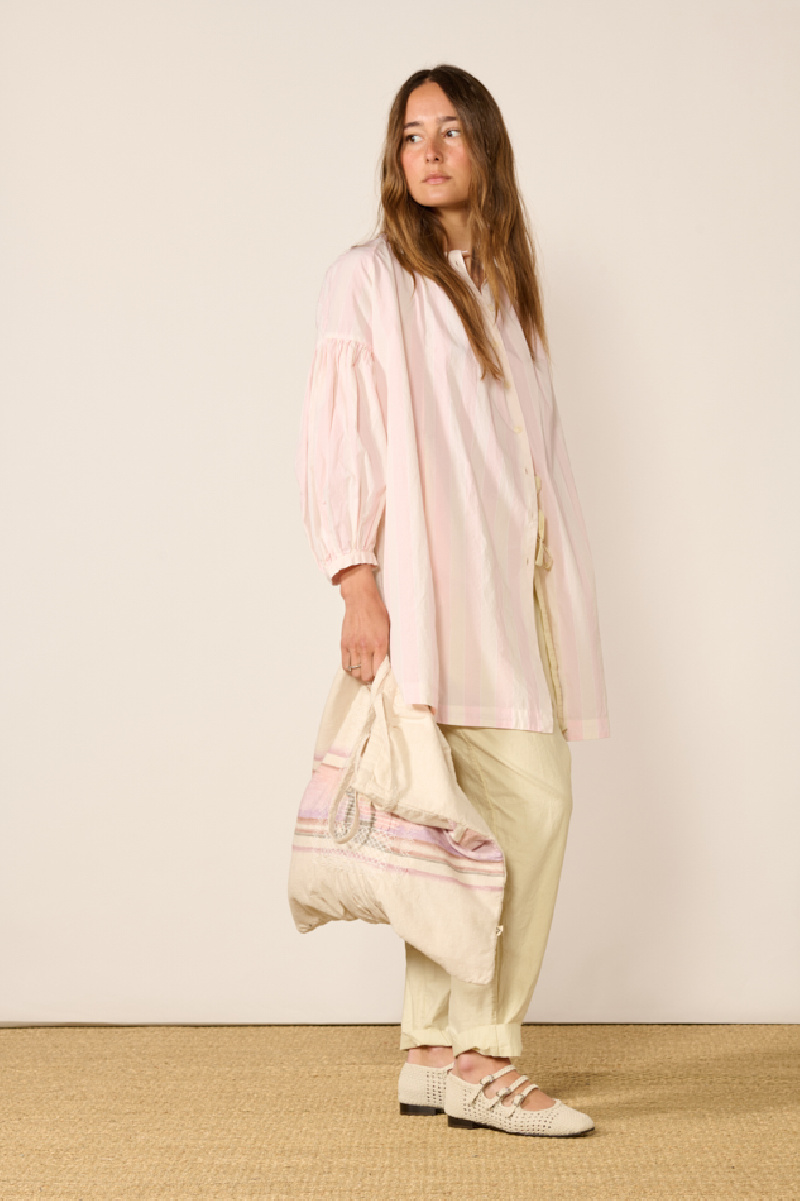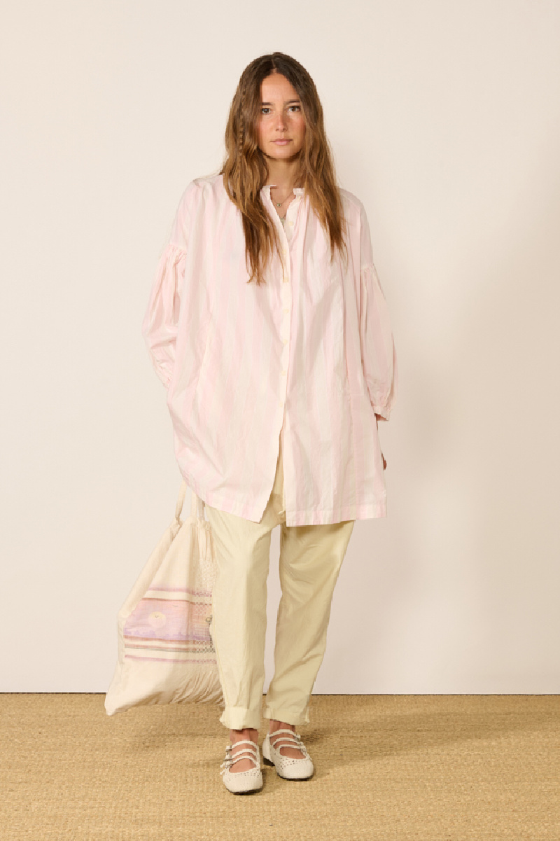 Tunique 3 by 3, confectionnée a partir de mousseline de coton rose et crème, de la marque Casey Casey.