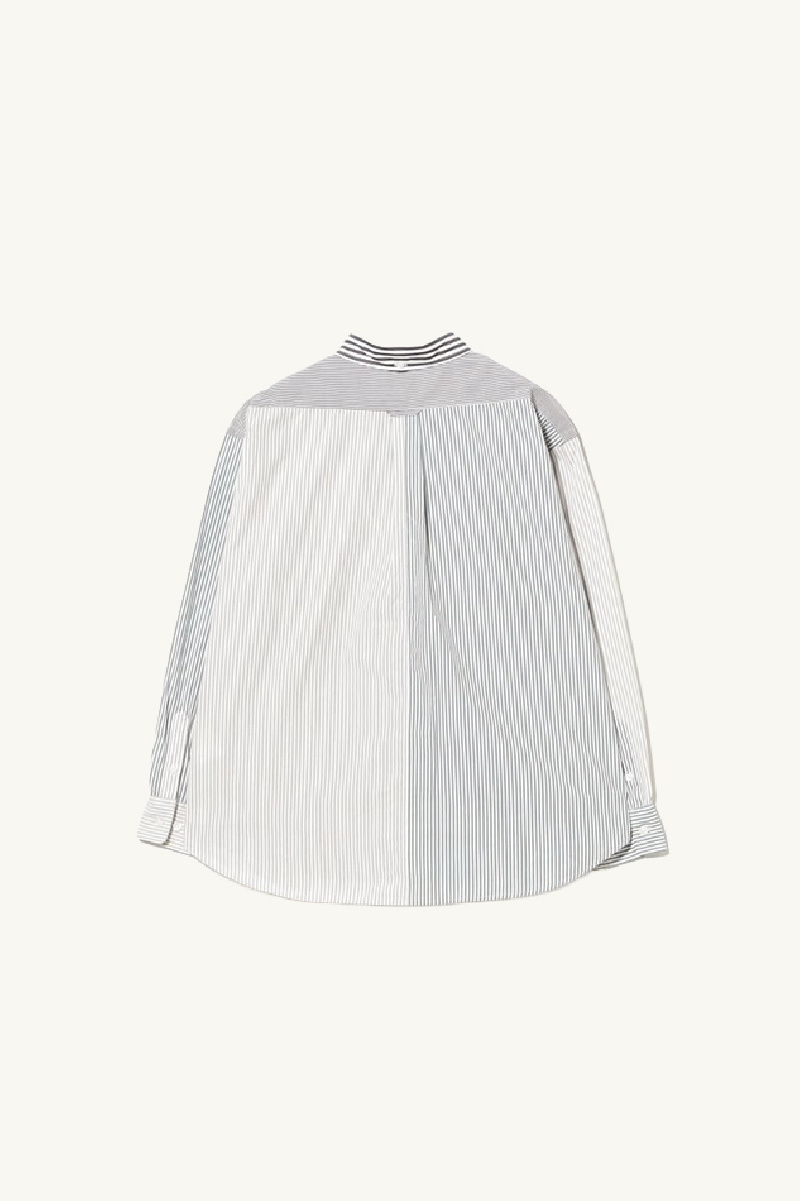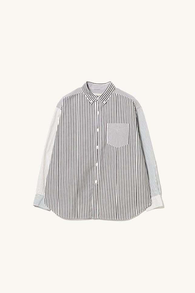 Chemise à manches longues confectionnée en coton à rayures vertes, noires, taupes, de la marque Beams Boy.