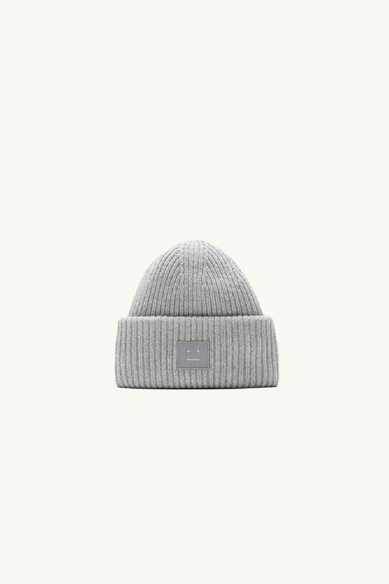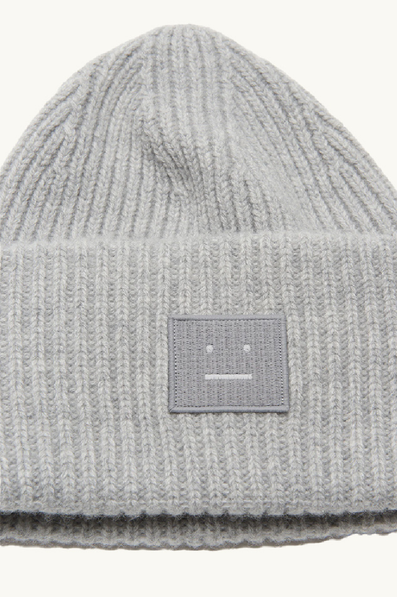 Bonnet en laine Acne Studios uni, gris chiné, logo Acne Face.
