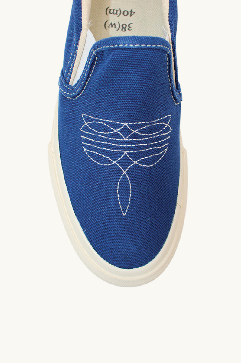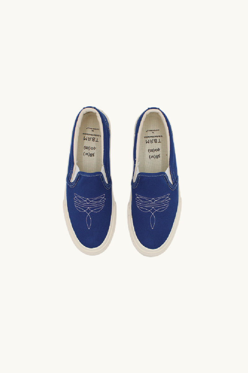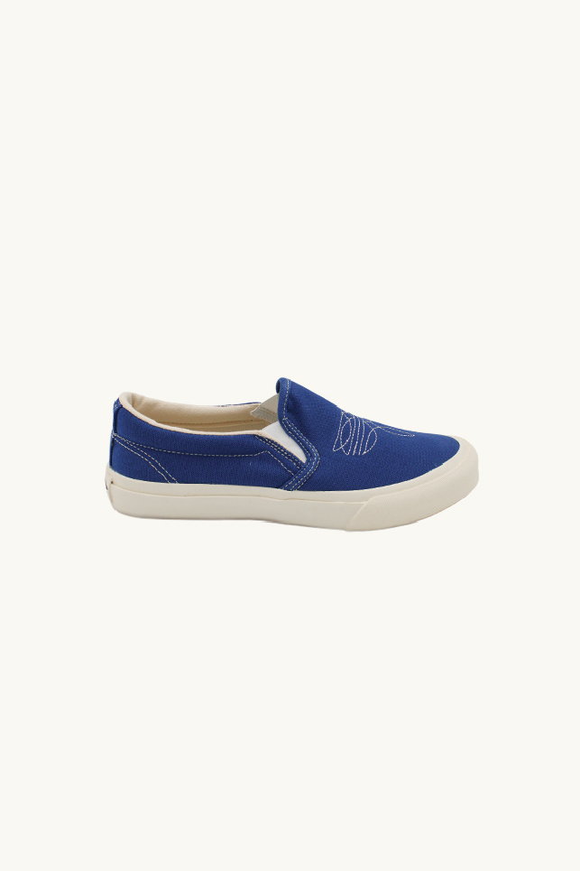 Slip-on, confectionnées en toile de coton bleu, de la marque coréenne Catch Ball.