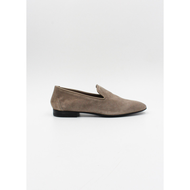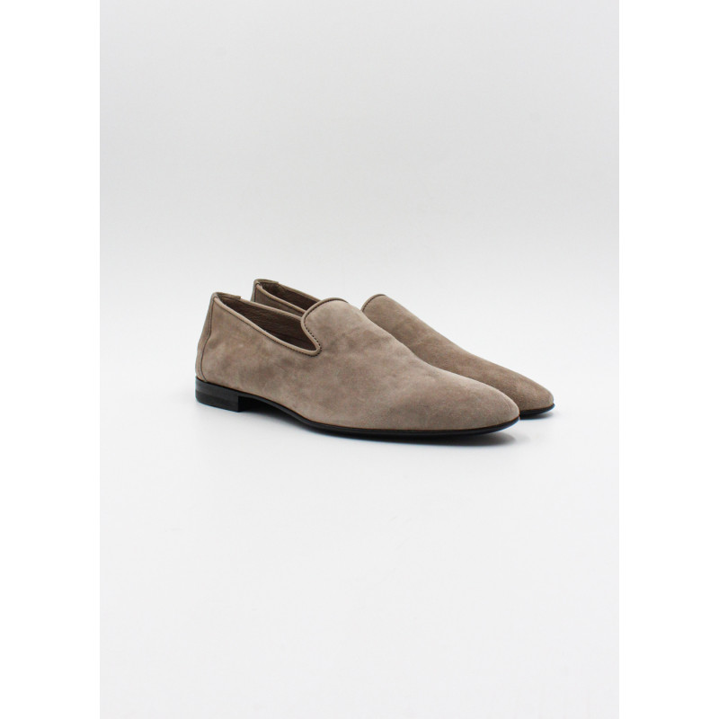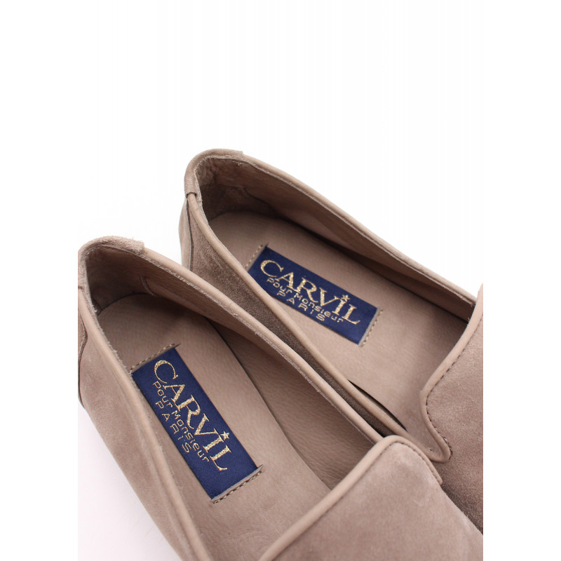 Mocassins de la marque Carvil, cuir velours léger, couleurs sable, semelle en cuir.