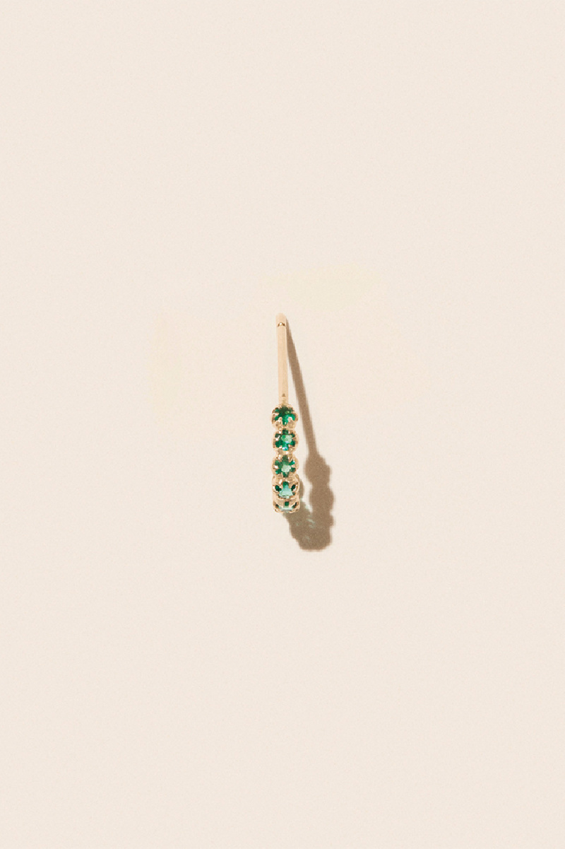 Boucle d'oreille Ava en or jaune 9 carats et ornée d’émeraudes de la marque Pascale Monvoisin.