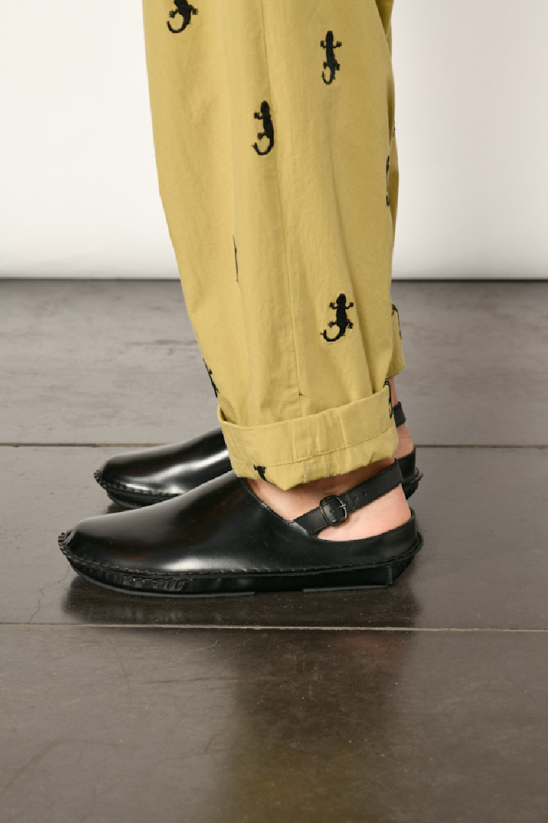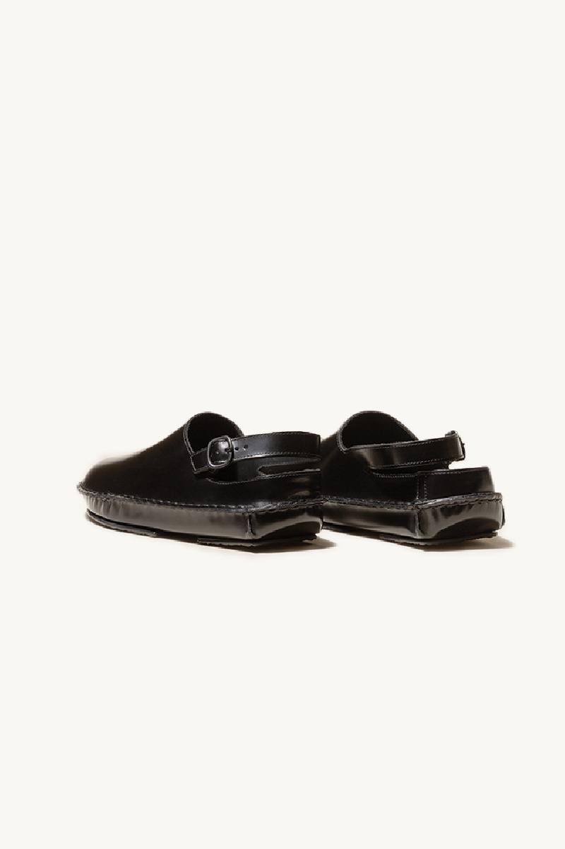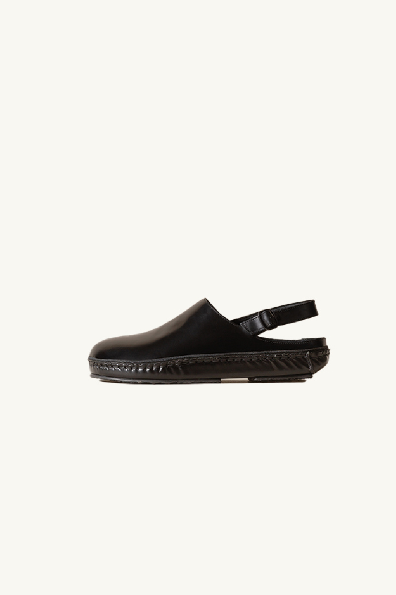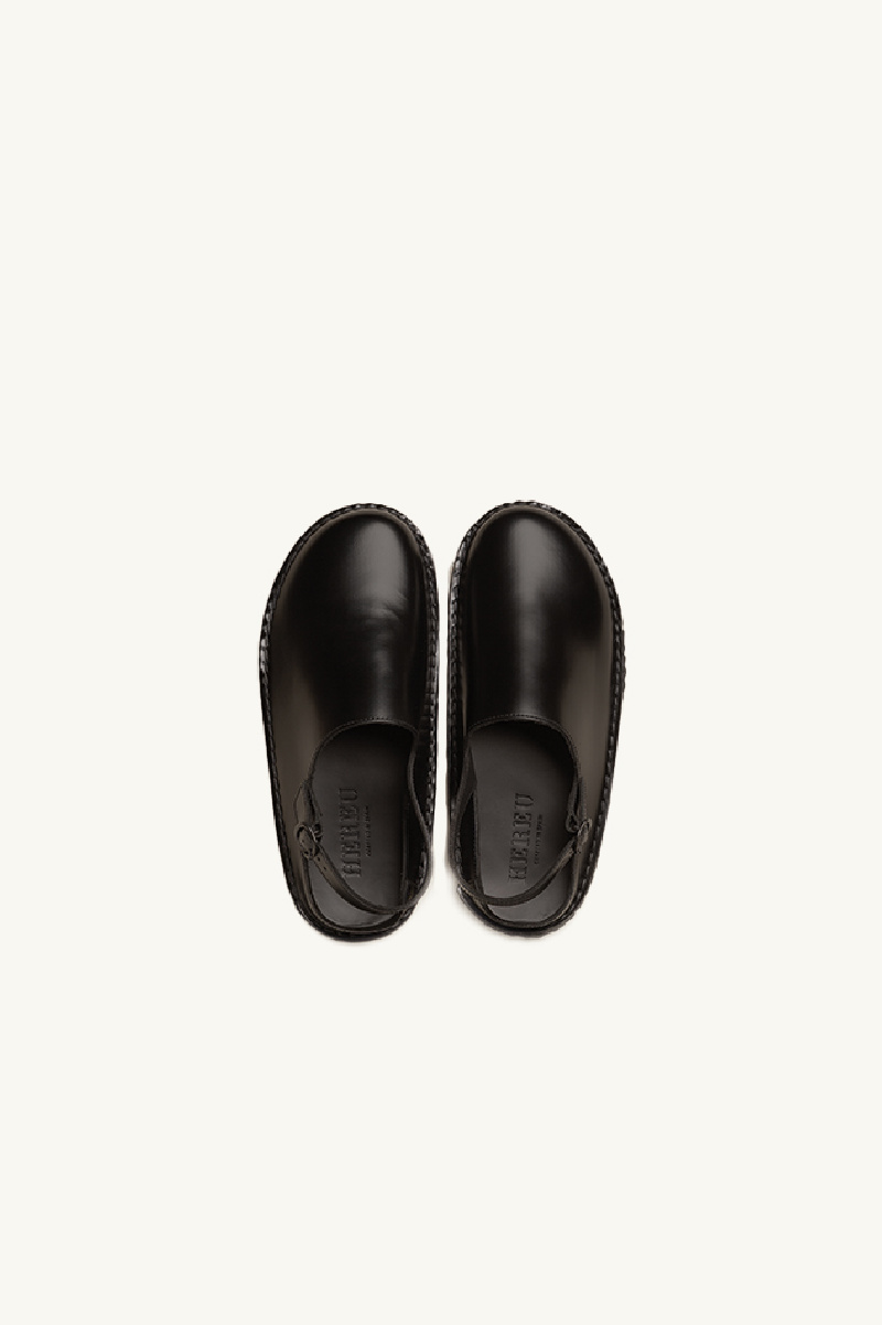 Sabots à bride confectionnés en cuir noir, de la marque Hereu.