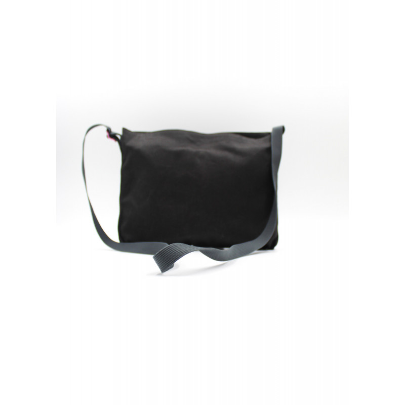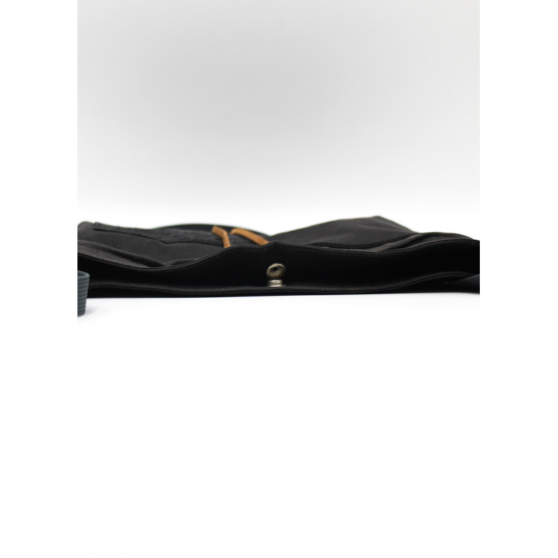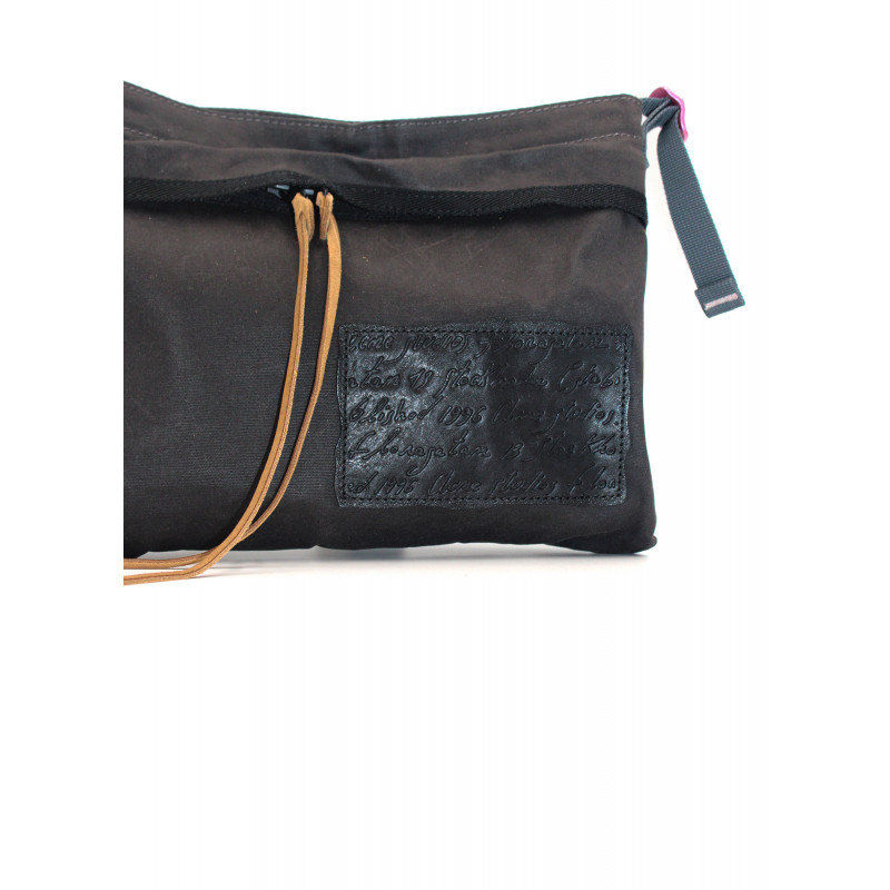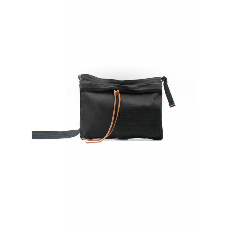 Sacoche à bandoulière de la marque Acne Studios, finition cirée, patch en cuir avec des inscriptions "Acne Studios", pochette extérieure, bouton-pression.