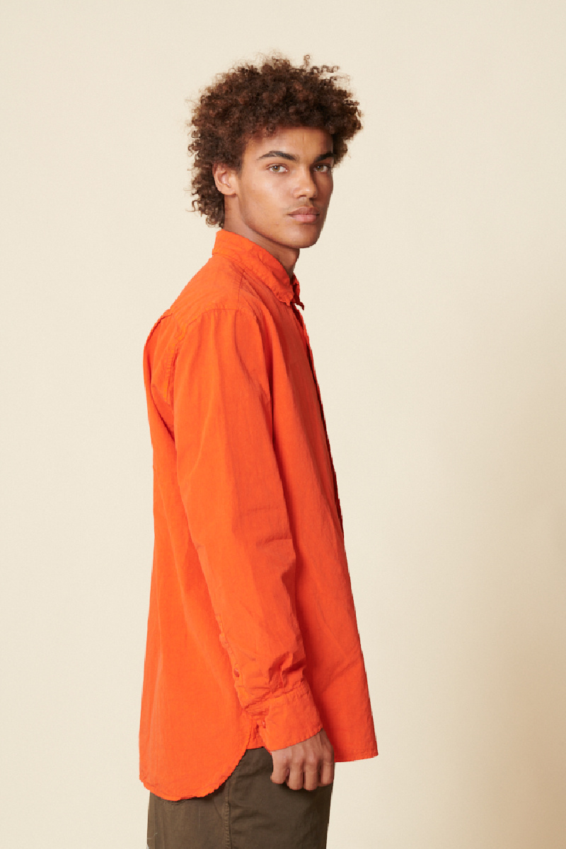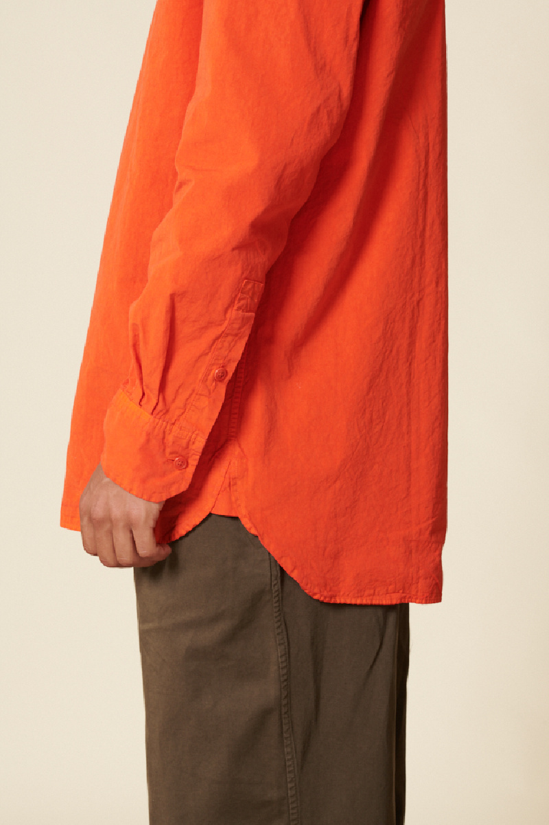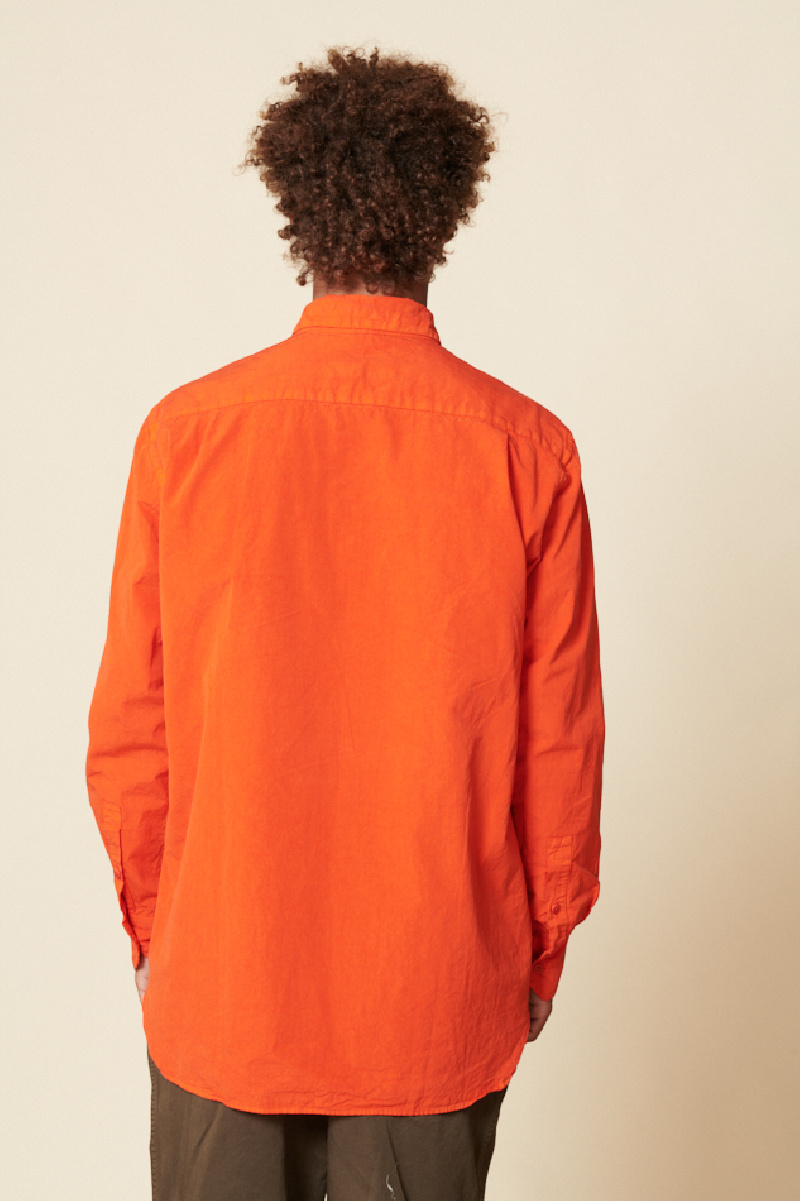 Chemise Big Raccourcie en coton égyptien froissé de la marque Casey Casey, dans une teinte orange brûlée. Elle présente une coupe droite et est dotée d'une poche poitrine.