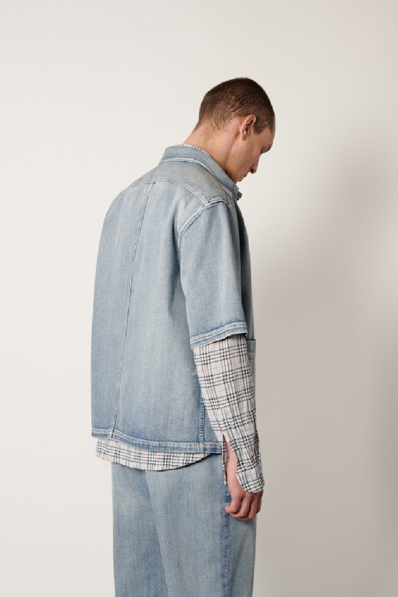 Cette chemise Ordior, confectionnée dans un denim blanchi et soigneusement brossé à la main, incarne le savoir-faire unique de Barena.