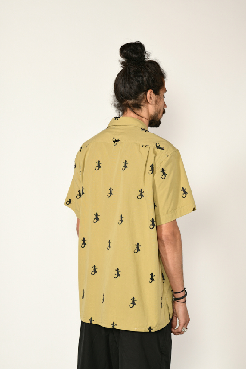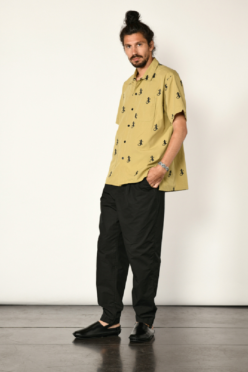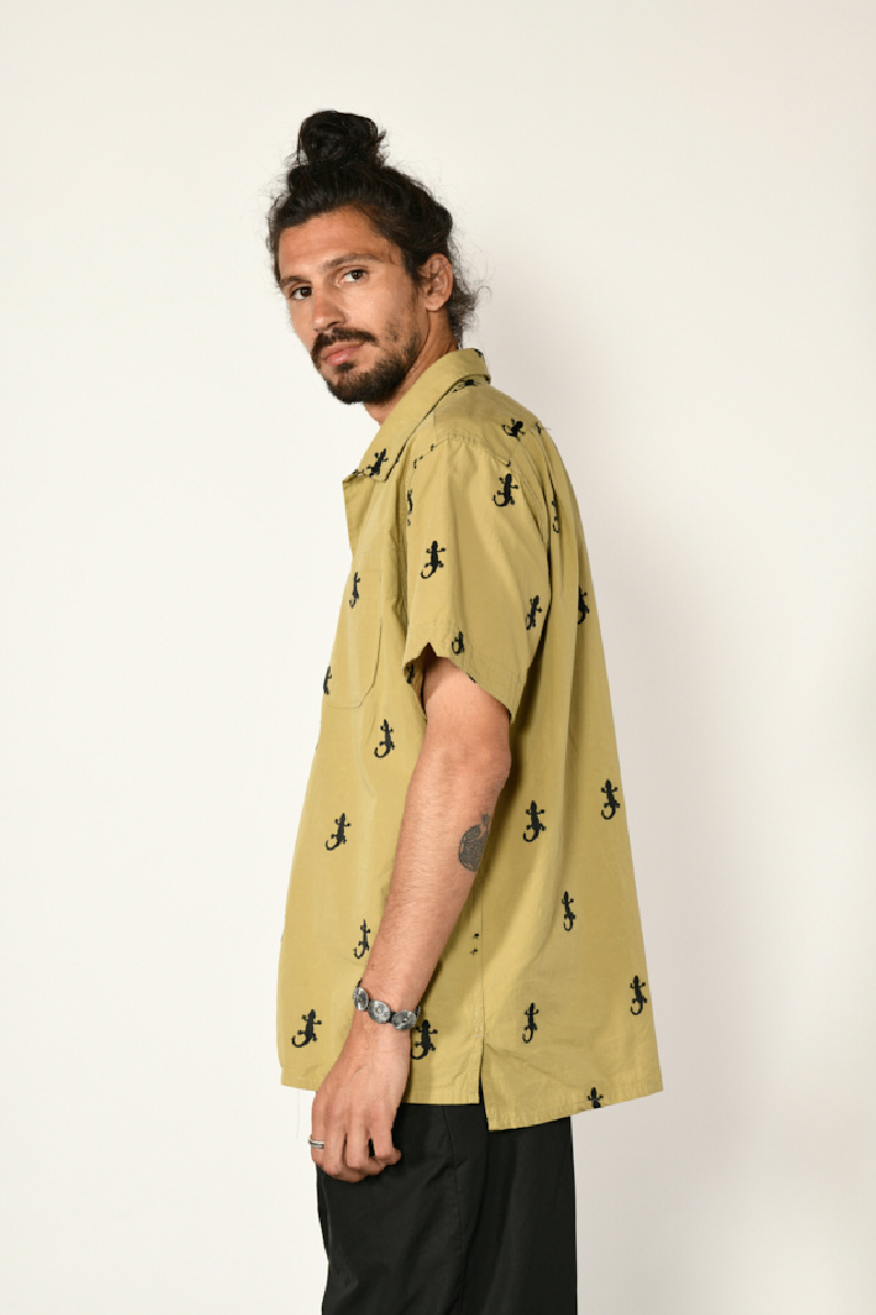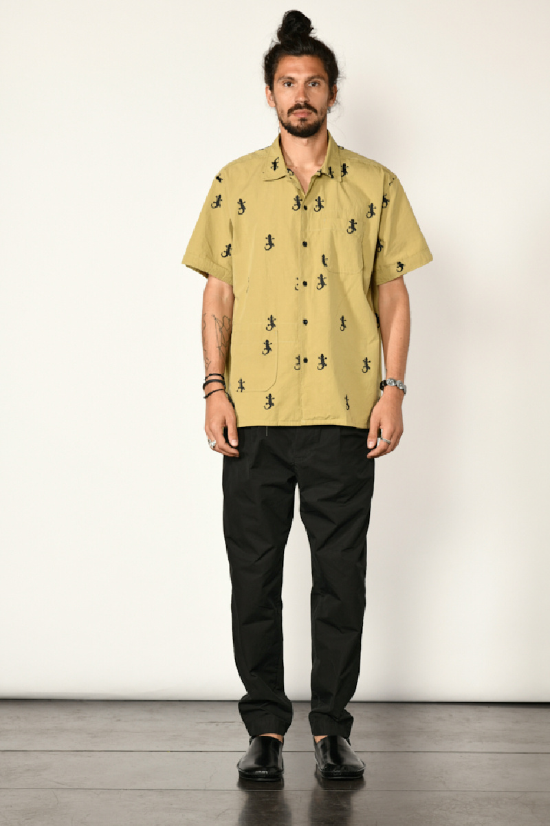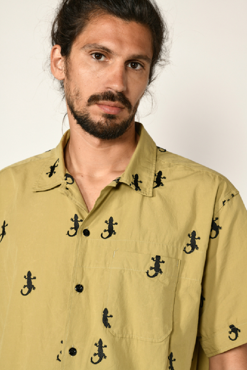 Chemisette kaki en coton à motifs Gecko brodés de la marque Engineered Garments.