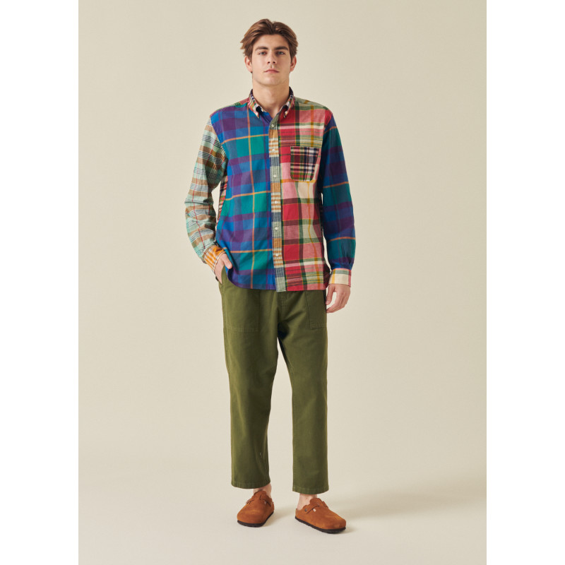 Chemise BEAMS PLUS, à carreaux, multicolore, fermeture par boutons blanc nacré à l'avant, poche sur la poitrine gauche, bouton de fermeture au niveau des poignets.
