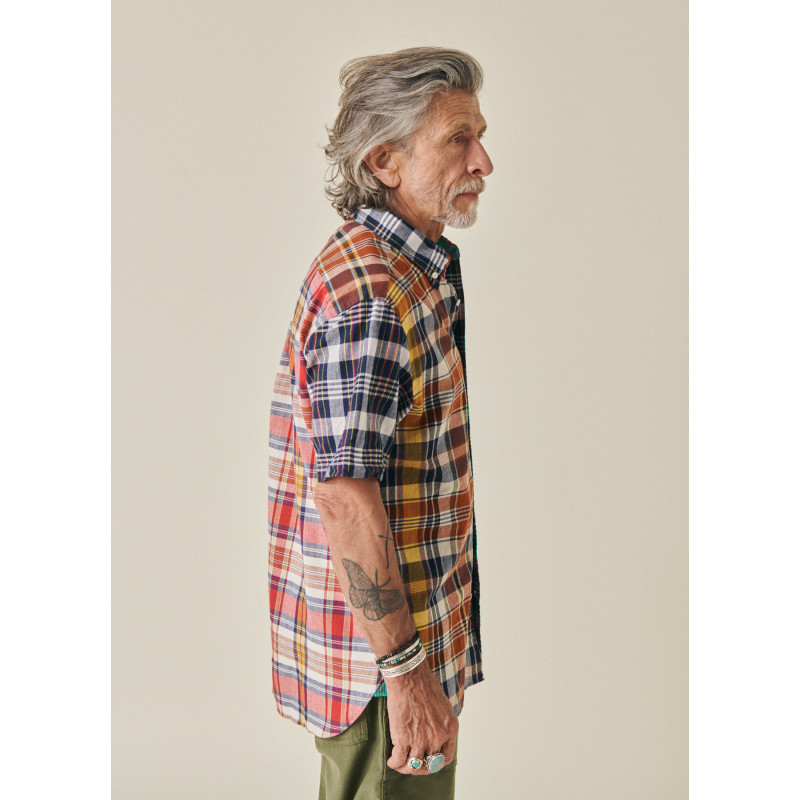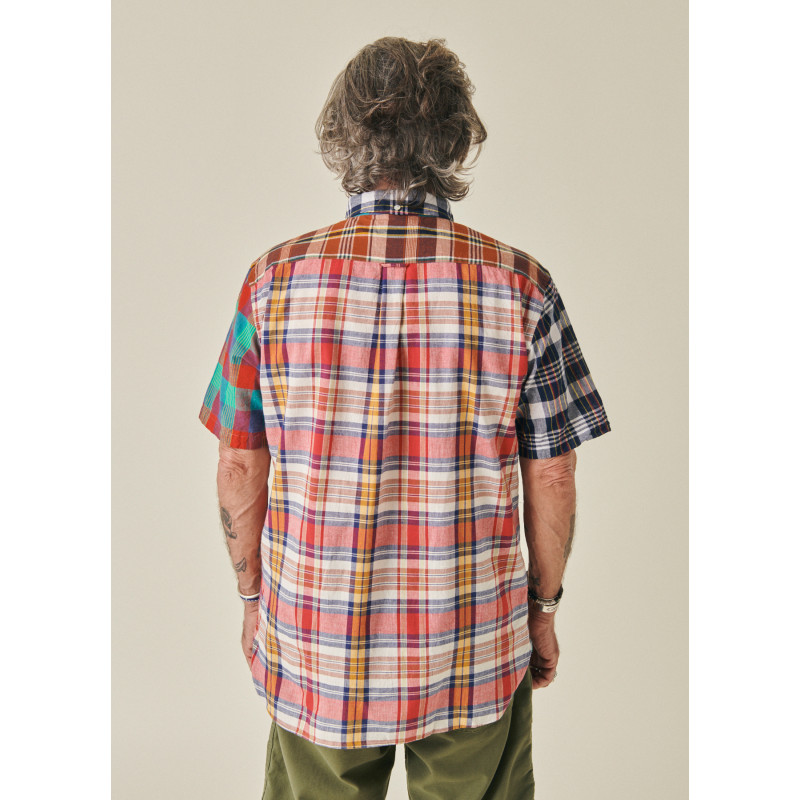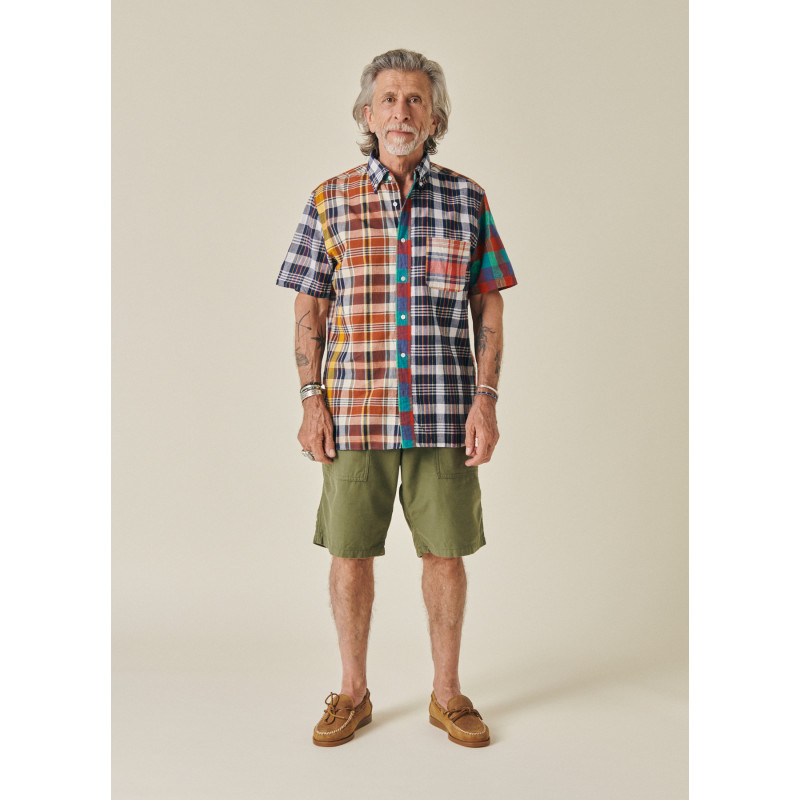 Chemise BEAMS+, à carreaux, multicolore, manches courtes, poches à l'avant sur la poitrine gauche, fermeture par boutons couleur blanc nacré, col classique, coupe large.