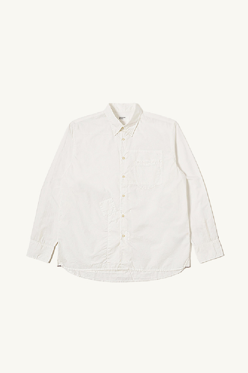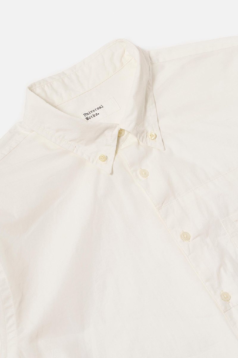 Chemise confectionnée en popeline de coton blanc cassé, de la marque Universal Works.