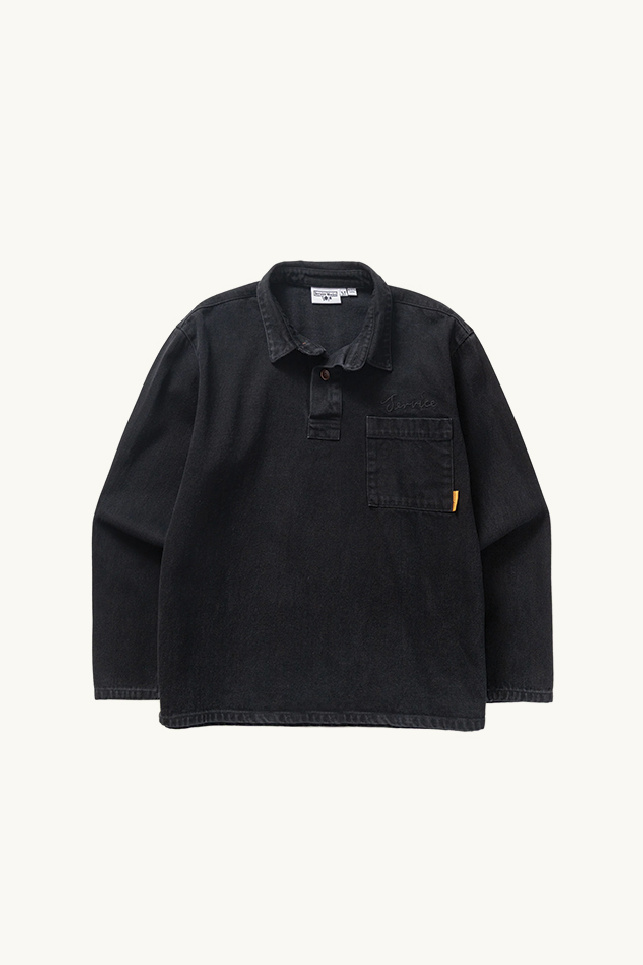 Elle présente une coupe ample et décontractée, un col classique accompagné d’une patte de boutonnage, ainsi qu’une poche plaquée sur la poitrine.