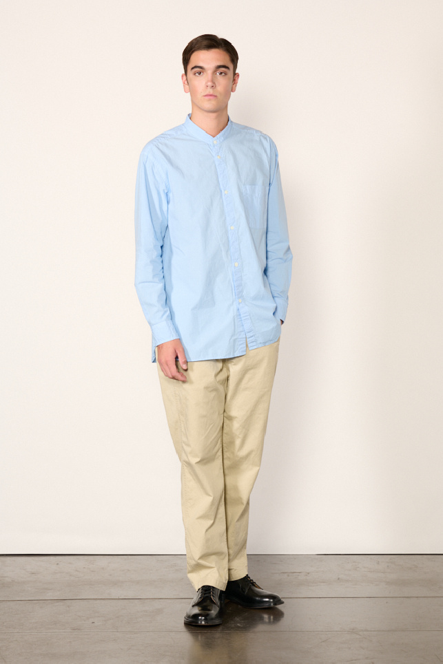 Elle offre une coupe droite, longue et décontractée avec un col officier, une fermeture à boutons, de légères fentes latérales sur le bas ainsi qu'une poche sur la poitrine, coté coeur.